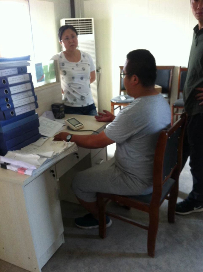就在這樣一個(gè)炎熱的夏日,公司畢大夫與李明俊不顧酷暑一起來(lái)到工地,給大家送來(lái)了電子血壓儀,畢大夫親自給大家示范,并詳細(xì)的詢問(wèn)工地職工的在職情況,唯恐漏下一個(gè)員工,為公路一線職工的身體健康添加了一道安全的防火線。