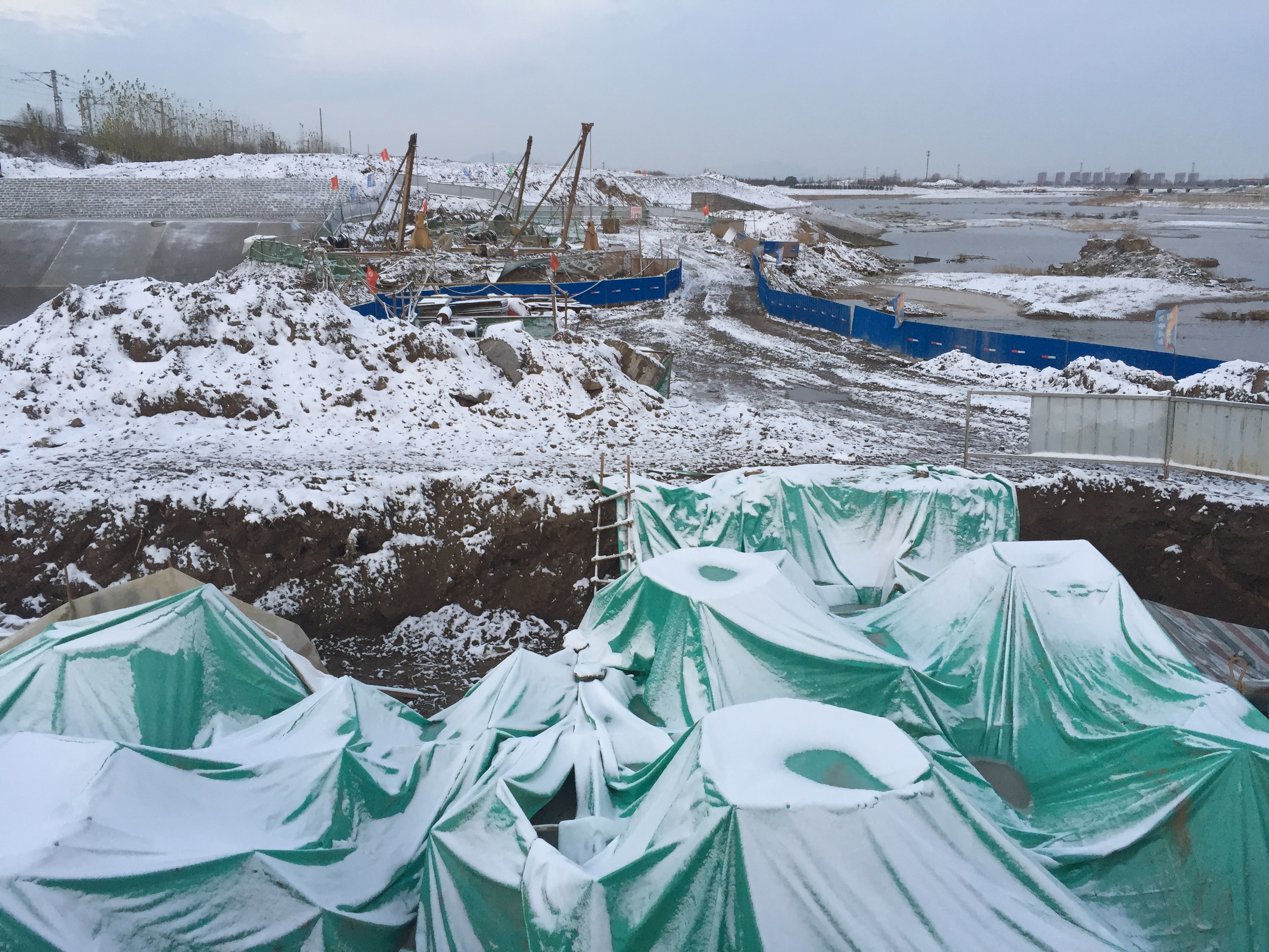 2016年11月22日,懸索橋工地、項目部被皚皚白雪覆蓋。