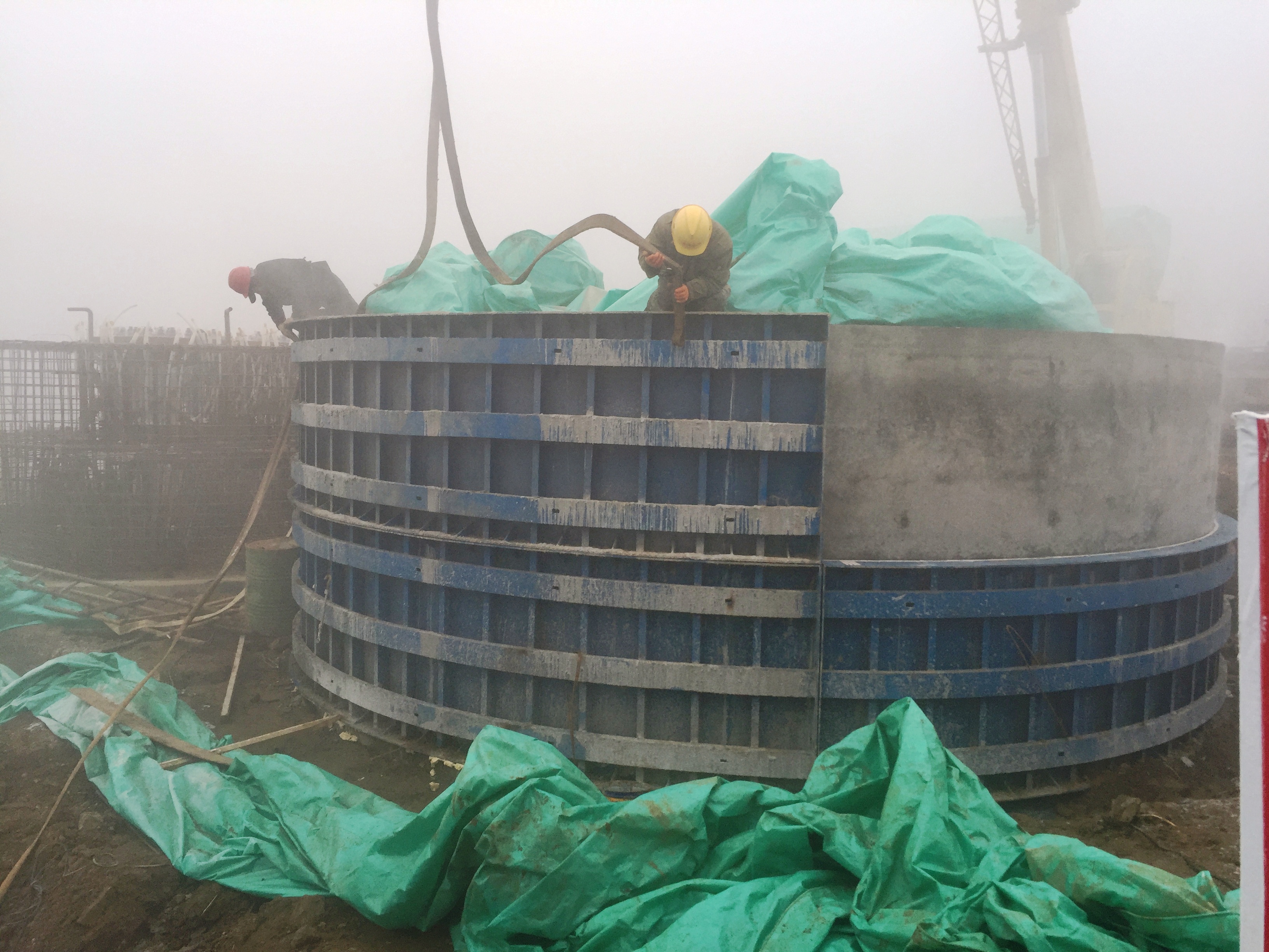 2017年1月2日,圓承臺混凝土養(yǎng)護。