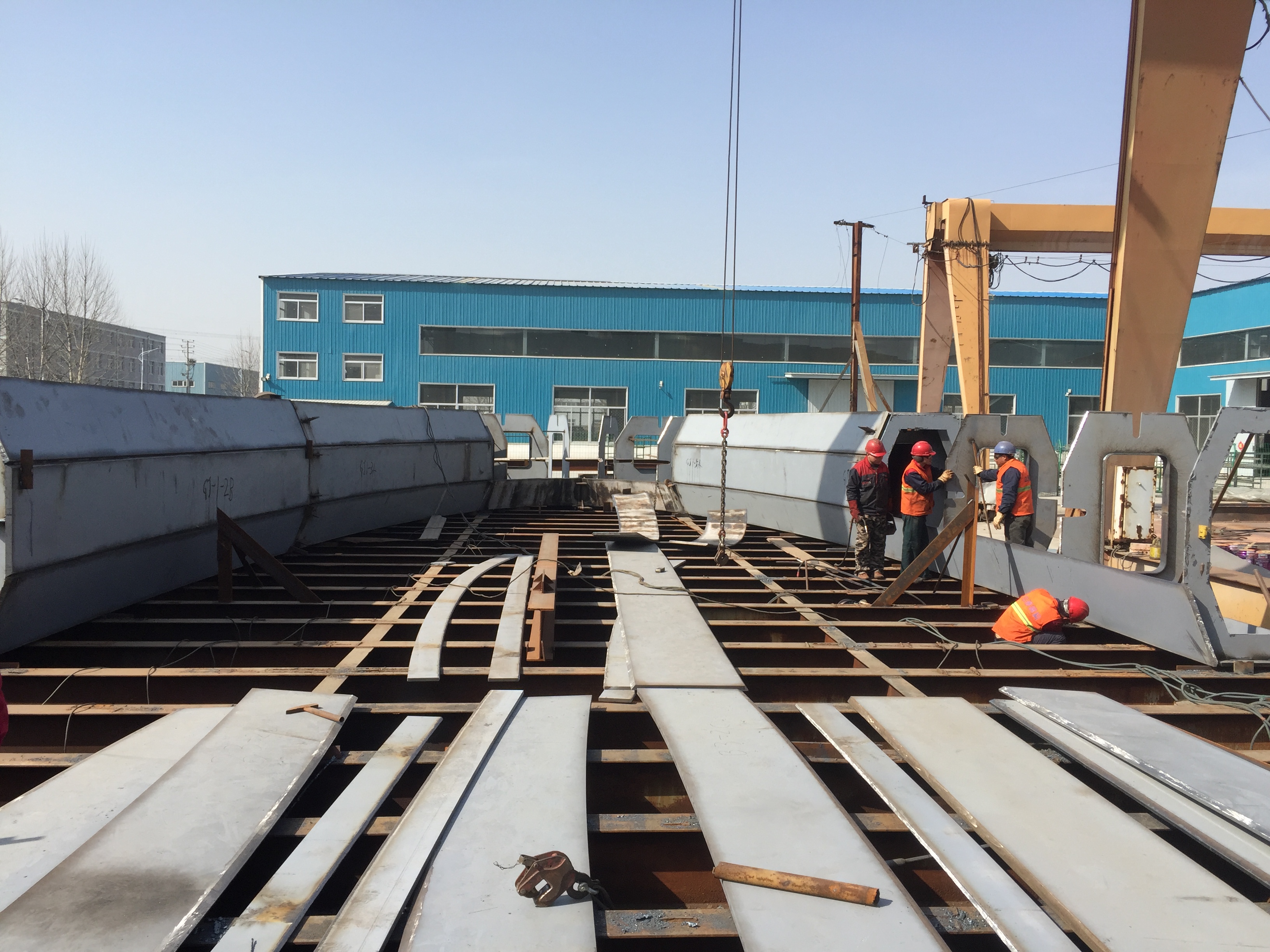 2017年2月9日,鋼主塔加工現(xiàn)場。
