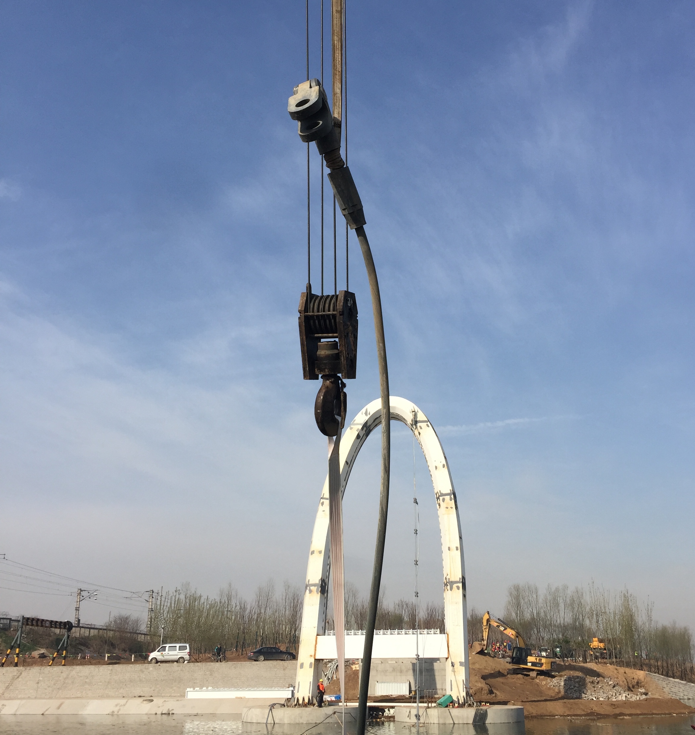 2017年4月10日,主纜起吊安裝。