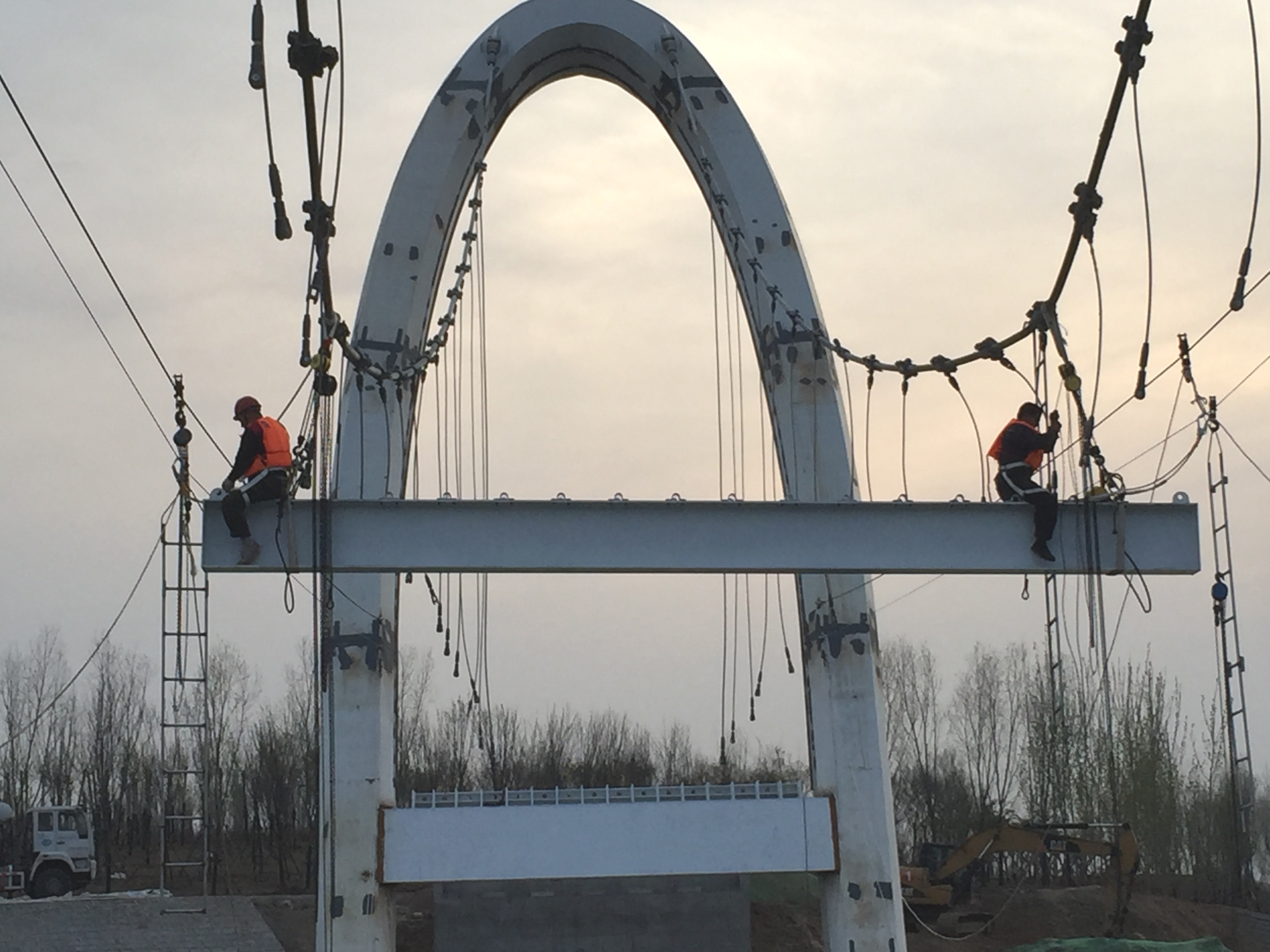 2017年2月28日,鋼主塔施工搭設(shè)腳手架。