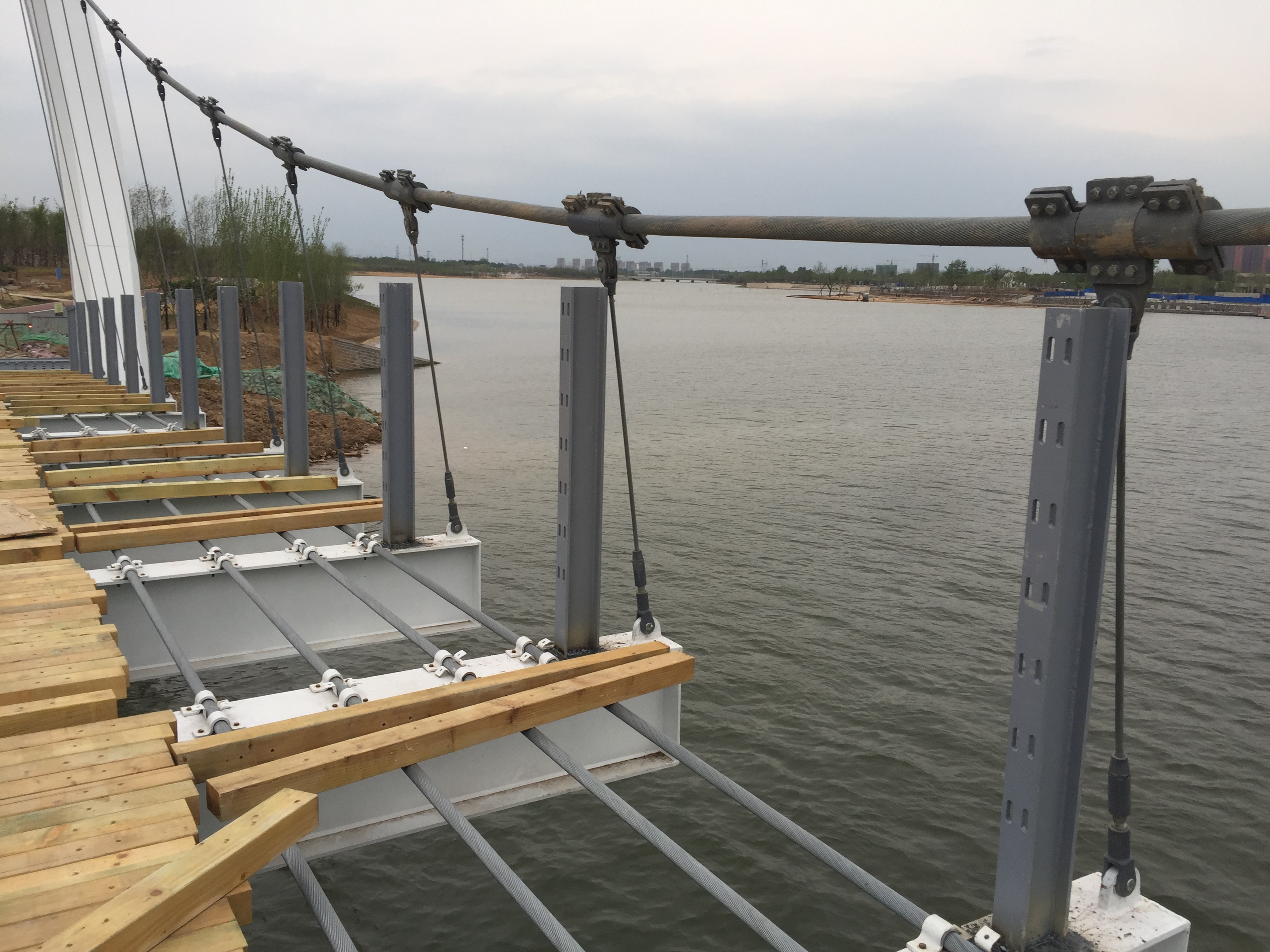 2017年5月9日,懸索橋防腐木鋪裝接近尾聲。
