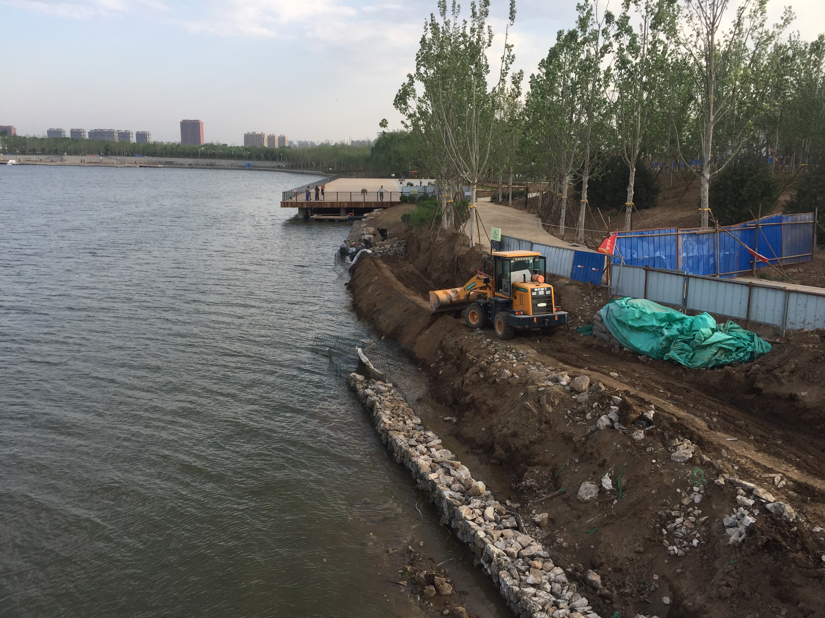 2017年4月29日,河岸進行木樁防護。