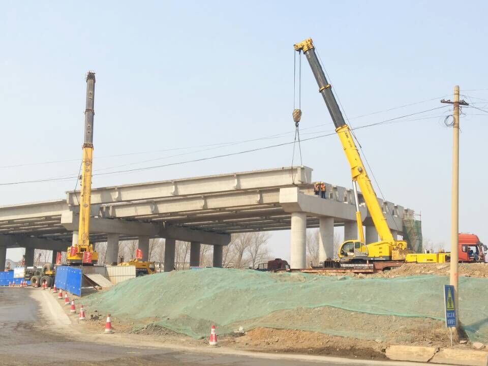 2臺汽車吊架設(shè)箱梁