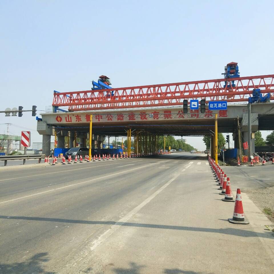 2017年5月23日,第20孔跨S294張博路架梁開始。為了這一天的到來,項(xiàng)目部人員可謂是克服了種種困難。不知多少遍的與公路局、交警大隊(duì)、雙楊鎮(zhèn)政府等各上級部門協(xié)調(diào)、溝通,方案也不斷的進(jìn)行優(yōu)化。最終確定下來,在趙瓦路口東西兩側(cè)新修兩條輔道,晚0點(diǎn)至凌晨5點(diǎn)對趙瓦路口進(jìn)行封閉施工,過往車輛從兩側(cè)輔道慢速通行。為了保證張博路車輛通行安全,在架梁前,項(xiàng)目部全體人員進(jìn)行了夜間道路封閉演練,演練按計(jì)劃順利完成。在歷經(jīng)了5個夜晚后,跨張博路箱梁架設(shè)完畢。