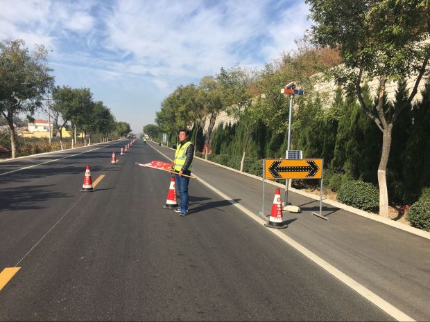 擺放減速標(biāo)志、反光錐、爆閃燈等安全設(shè)施