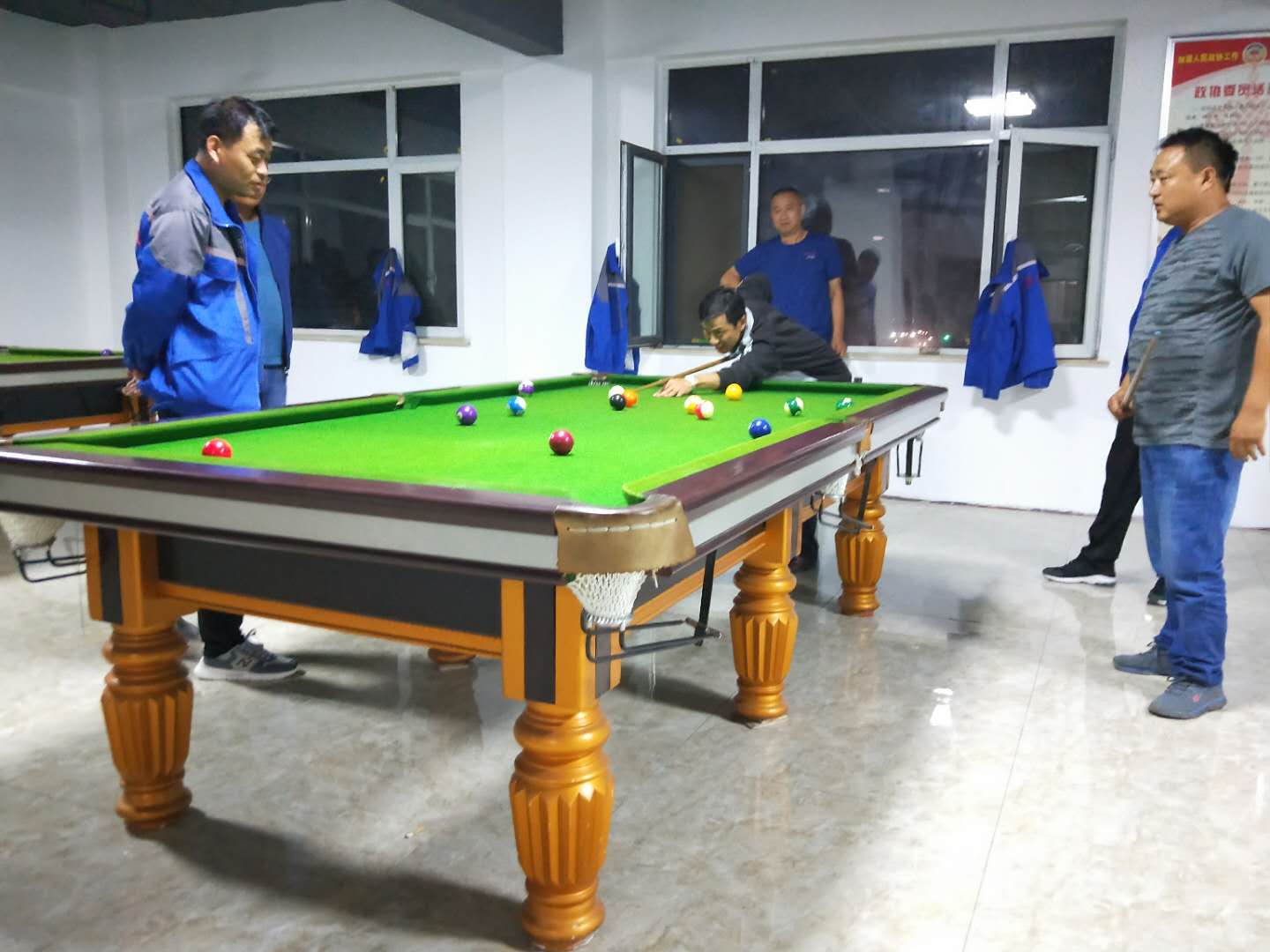 臺(tái)球比賽中參賽職工冷靜思索,沉著出桿,展現(xiàn)自己扎實(shí)的技術(shù)水平