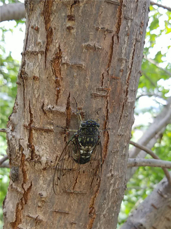 小時候逮蟬是最有趣的事之一,夏天的博山池上鎮(zhèn)的魯山是蟬的樂園,按博山方言,蟬的分類有“麥梢前”,體積小。 “梢前”,個頭大,一般都在樹叉以上的枝梢上,不容易逮。 “嗚影娃”,個頭較梢前稍小,在山區(qū)嗚影娃的數(shù)量比其他種類的蟬的數(shù)量都要多,也是孩子們逮蟬的主要對象, 最后是“嘟了”,比麥梢前還小,叫完就飛跑,不好逮。 夏天的樹上草上甚至電線桿上都是它們的暫停地方。記得小時候我一中午也能逮六七十個。至此,不禁想起了清代袁枚《所見》:“意欲捕鳴蟬,忽然閉口立。”短短十字卻形象的寫出了牧童逮蟬時的機(jī)智、天真、可愛。