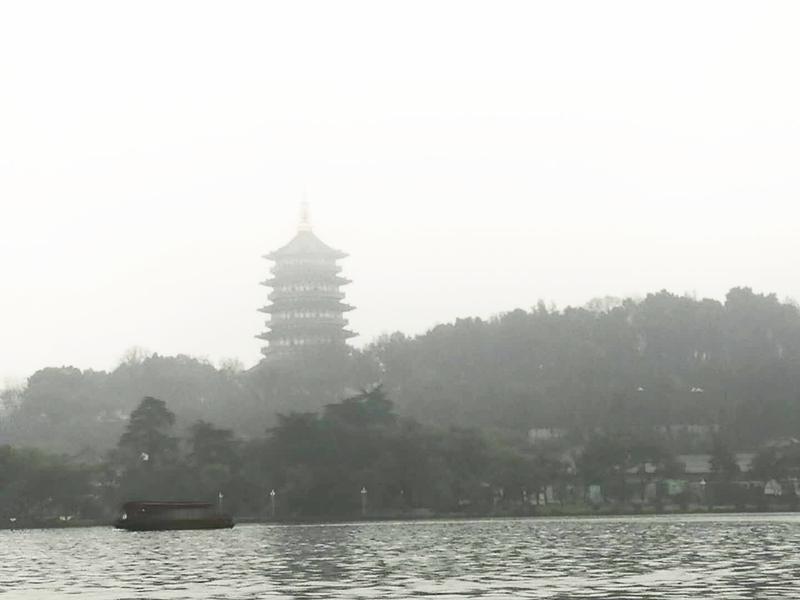 去時(shí),天空中還下著毛毛細(xì)雨。向著西湖遠(yuǎn)遠(yuǎn)眺望,淡淡的薄霧像是一襲輕紗,輕輕遮住了西子?jì)赡鄣哪橗嫞?xì)細(xì)的垂柳倚水而立,微風(fēng)吹來,仿佛秀發(fā)一樣輕輕撥動(dòng),給整個(gè)西湖憑空增添的幾分姿色。