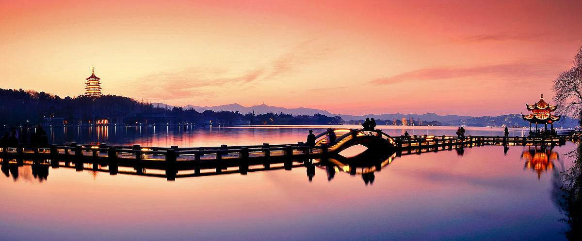 遠(yuǎn)眺西湖,似乎東坡先生當(dāng)年站在船頭,把手拂須,舉杯邀月,對(duì)湖吟唱“欲把西湖比西子,淡妝濃抹總相宜”的情景,還忽隱忽現(xiàn)的飄蕩在西湖上。