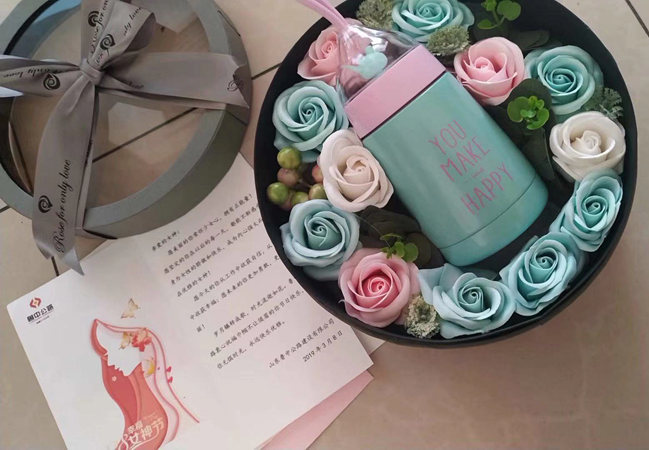 對于公路施工企業(yè),員工的男女比例永遠(yuǎn)懸殊較大,所以每位女員工都是魯中公路捧在手心里的寶。值此“三八”節(jié)到來之際,公司為每位女員工準(zhǔn)備了精美的禮盒,12朵嬌艷的玫瑰映襯著一個(gè)漂亮的保溫杯,寓義著愛你一“輩”(杯)子。無俱歲月流逝,在魯中公路的成長歷程中,永遠(yuǎn)記載著這些美麗的姑娘們,帶給企業(yè)的芬芳與溫暖。