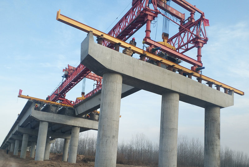 橋上的工人們也都在忙碌著,有夯實(shí)機(jī)的聲音、有起重機(jī)的聲音、有混凝土泵車的聲音,眾多聲音交匯融合,大橋被映襯的生機(jī)勃勃。