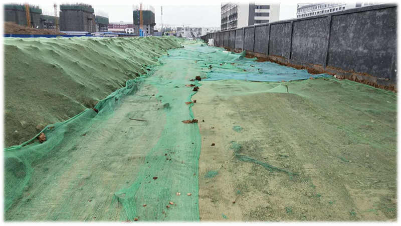 魯中公路經(jīng)開區(qū)道路工程工地防揚塵非施工區(qū)域全部采用綠網(wǎng)覆蓋
