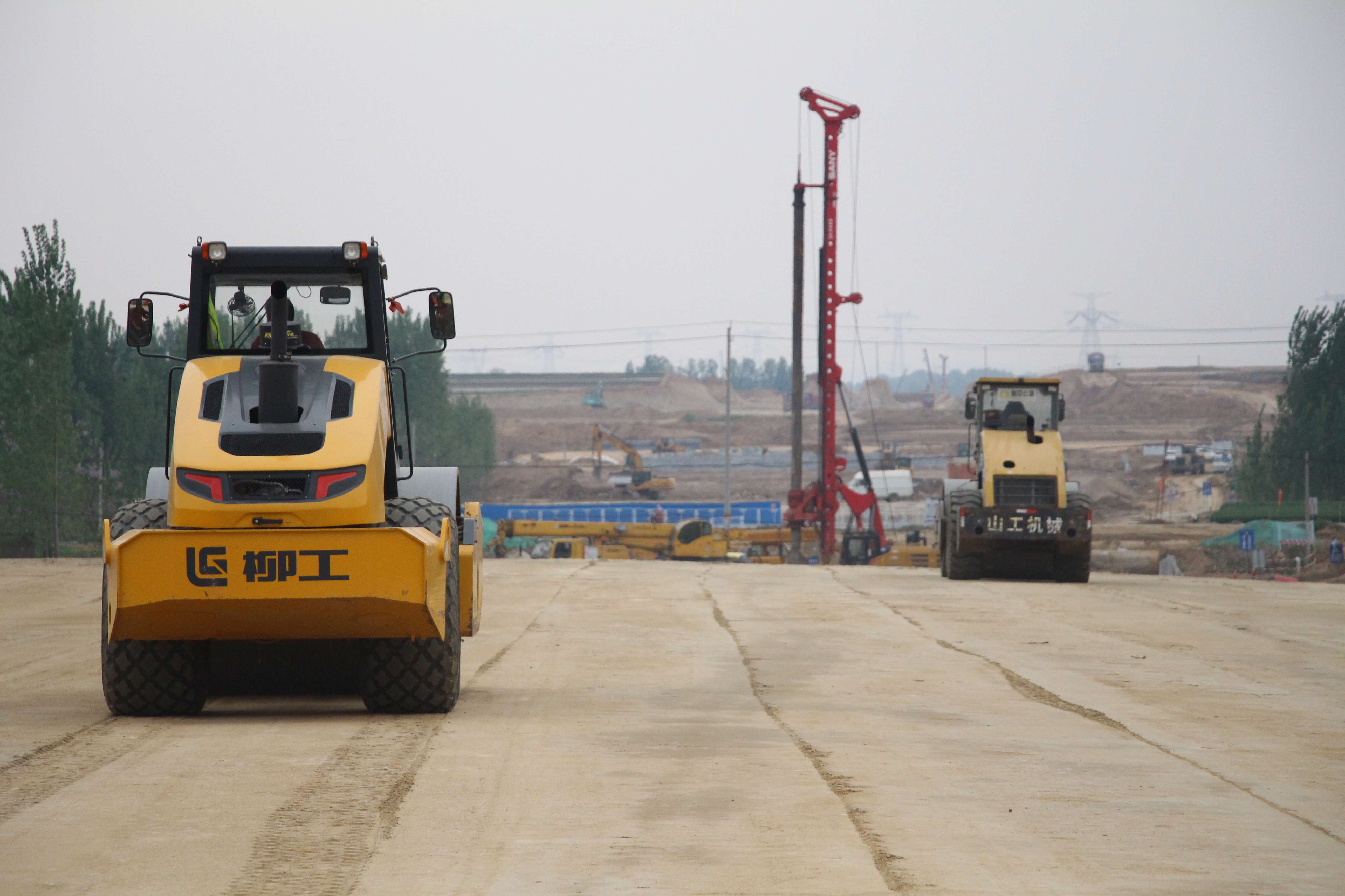通過這一系列的有效措施,各線工作逐步步入正軌。施工便道上,運輸土石方的近百輛運輸車絡繹不絕,來回穿梭、各類大型施工機械設(shè)備,齊聲轟鳴,路基填筑碾壓、樁基鉆孔灌注、臺背回填壓實、系梁澆筑混凝土......各項工序有條不紊,快速推進。