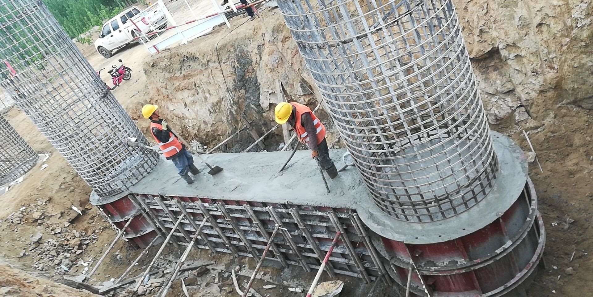 從項目工程現(xiàn)場到分部駐地有十分鐘左右的車程,回去用餐、休息,再返回工地,最少也要半個小時。為了節(jié)省時間,也為了及時完成今天的臺身澆筑任務,一分部橋涵工區(qū)經(jīng)理王鵬輝、渠繼武決定不回項目部,和施工隊隨便對付了幾口后,便又投入了緊張的工作中。