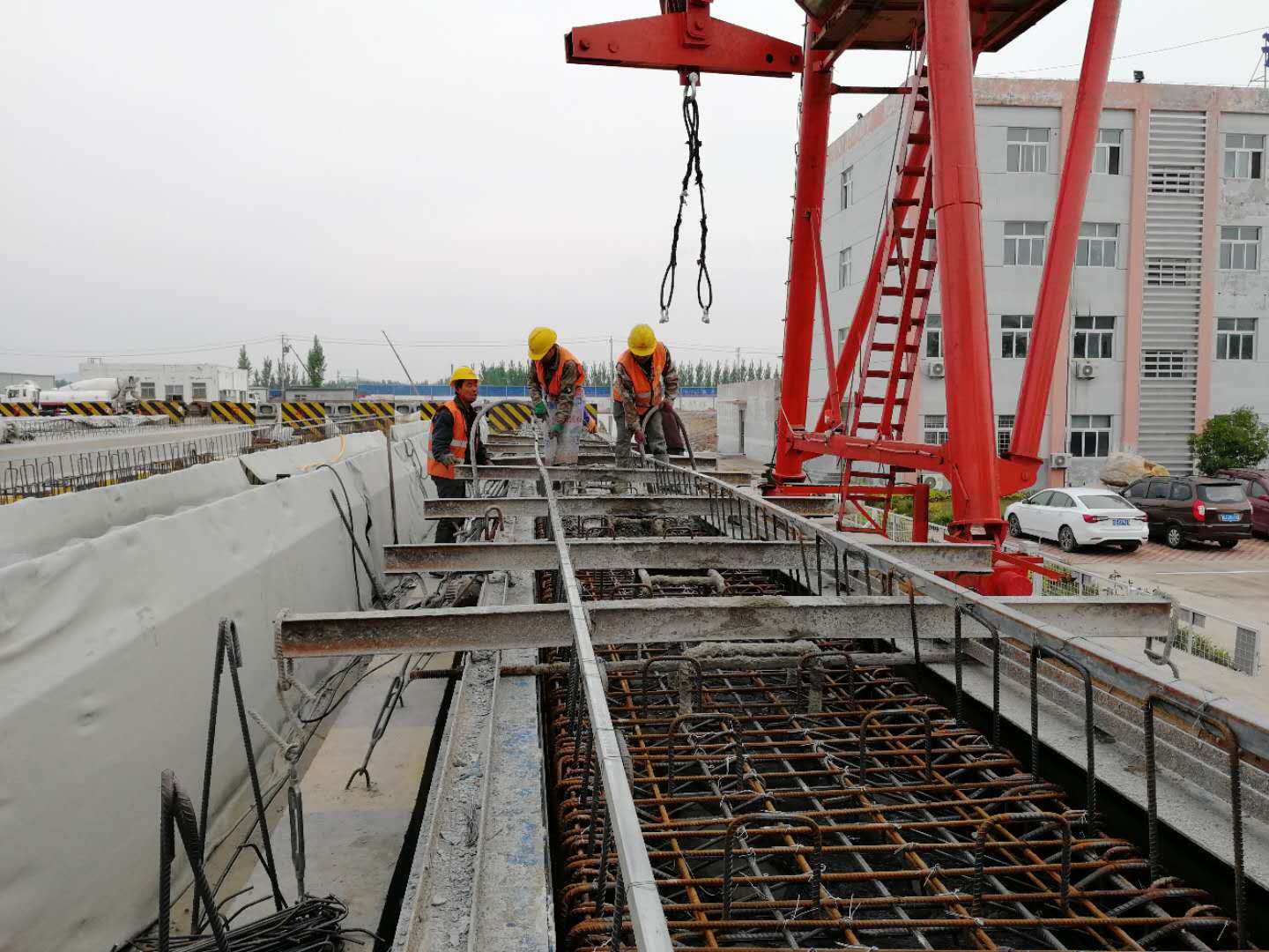 二分部華豐梁場,梁場負責人徐永文正指揮工人進行預制箱梁準備工作。