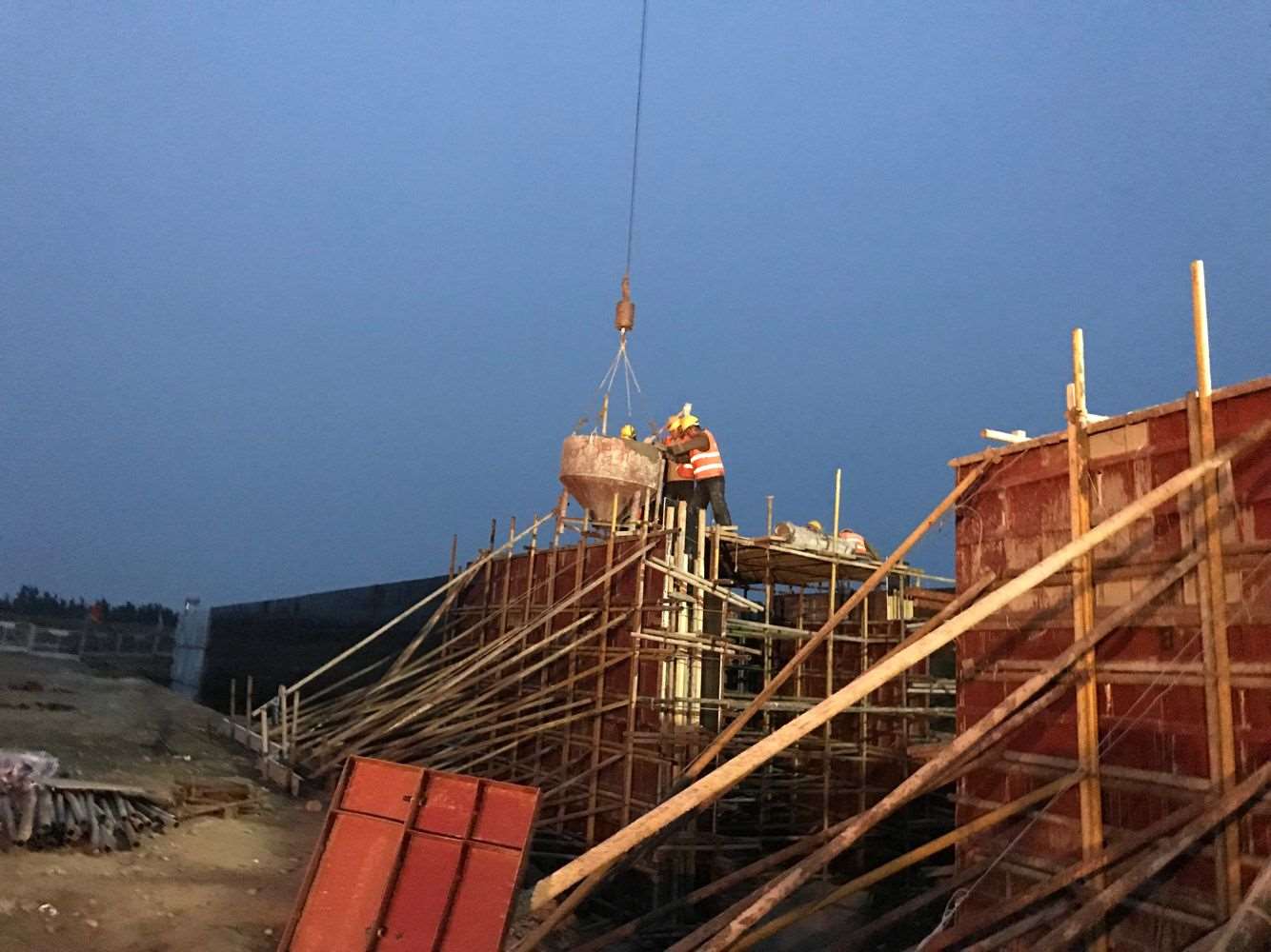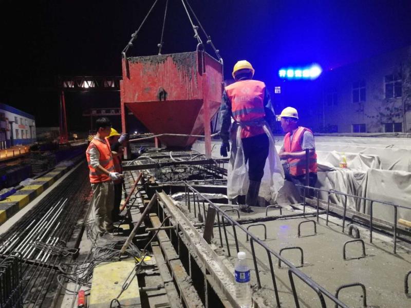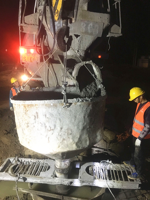 由于今晚還有樁基灌注任務,范廣金、趙祥坤、劉亞坤等幾名現(xiàn)場管人員匆匆拔了幾口飯便又返回了現(xiàn)場,隨著一車車混凝土運到施工現(xiàn)場,伴著一根根樁基、系梁、一片片涵身順利澆灌完畢,時間也已來到了晚上22:00。