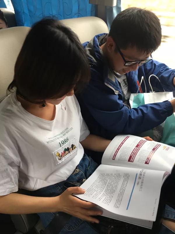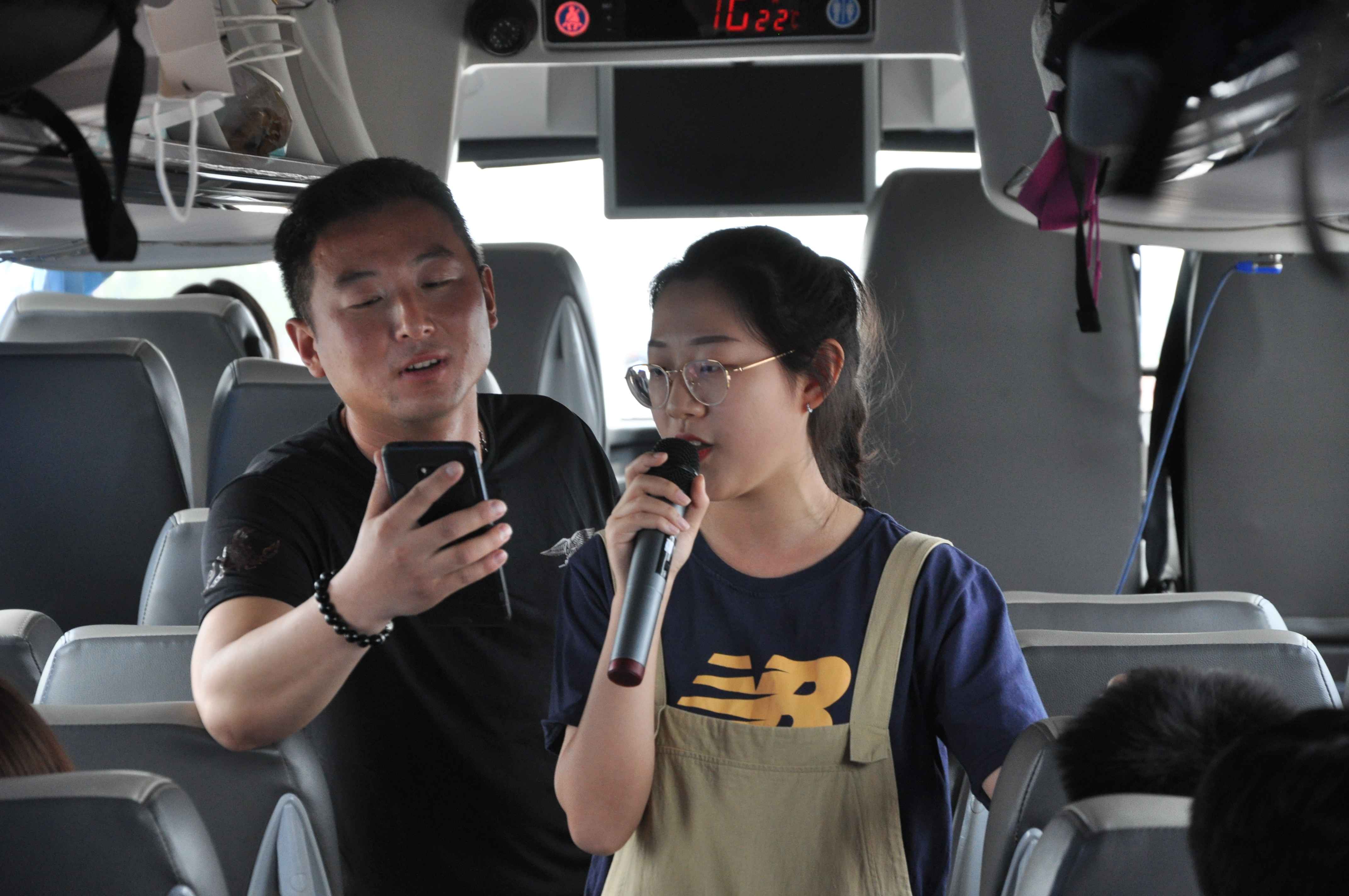 結(jié)束了G2項(xiàng)目的參觀及職業(yè)體驗(yàn),大巴車再次起程,驅(qū)車前往臺兒莊古城。一路上大家的話題開始多了起來,大家彼此之間多了“路”與“橋”做連接。隨著大巴車緩緩駛?cè)胗刑煜碌谝磺f之稱的臺兒莊,發(fā)生在這片土地上的故事和淵源吸引了一行人的興致。用歌聲寄情懷,大巴車也再次開啟了K歌模式,先由市兒童活動中心幼兒園工會吳主席帶領(lǐng)大家唱響《我和我的祖國》、《歌唱祖國》,開始了紅歌聯(lián)唱,緊接著每個(gè)人一展歌喉,從經(jīng)典流行到童謠歌曲,整個(gè)旅途都熱鬧起來。