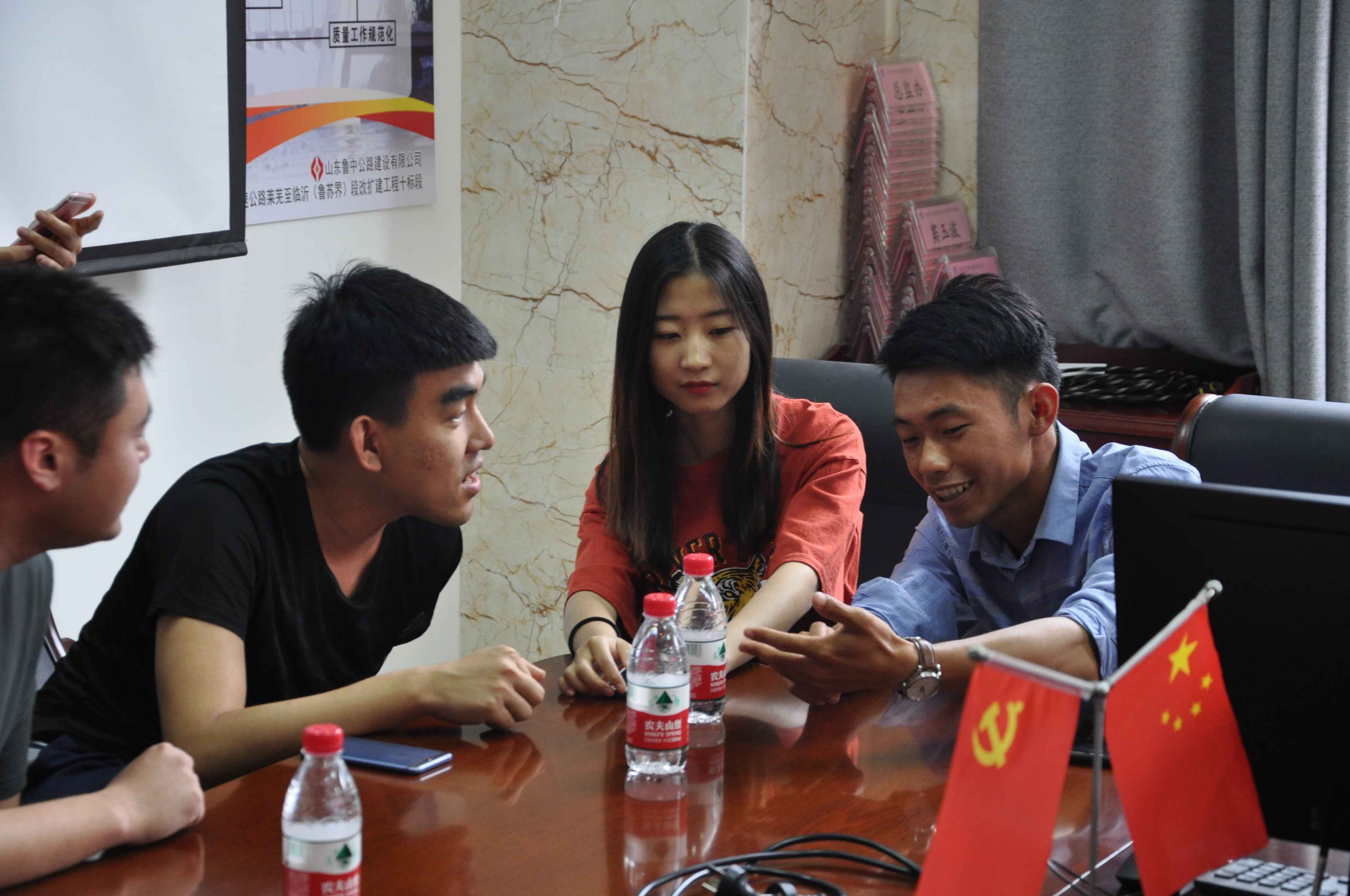 為了一解姑娘們舟車勞頓,小伙子們早早的準(zhǔn)備了果盤、零食,大家在G2京滬高速項(xiàng)目部的會議室歡聚一堂,辦公室主任魏玉波向市兒童活動中心的老師們做了項(xiàng)目介紹及幽默風(fēng)趣的歡迎儀式,使年輕人們記住彼此的姓名,消除了拘束。