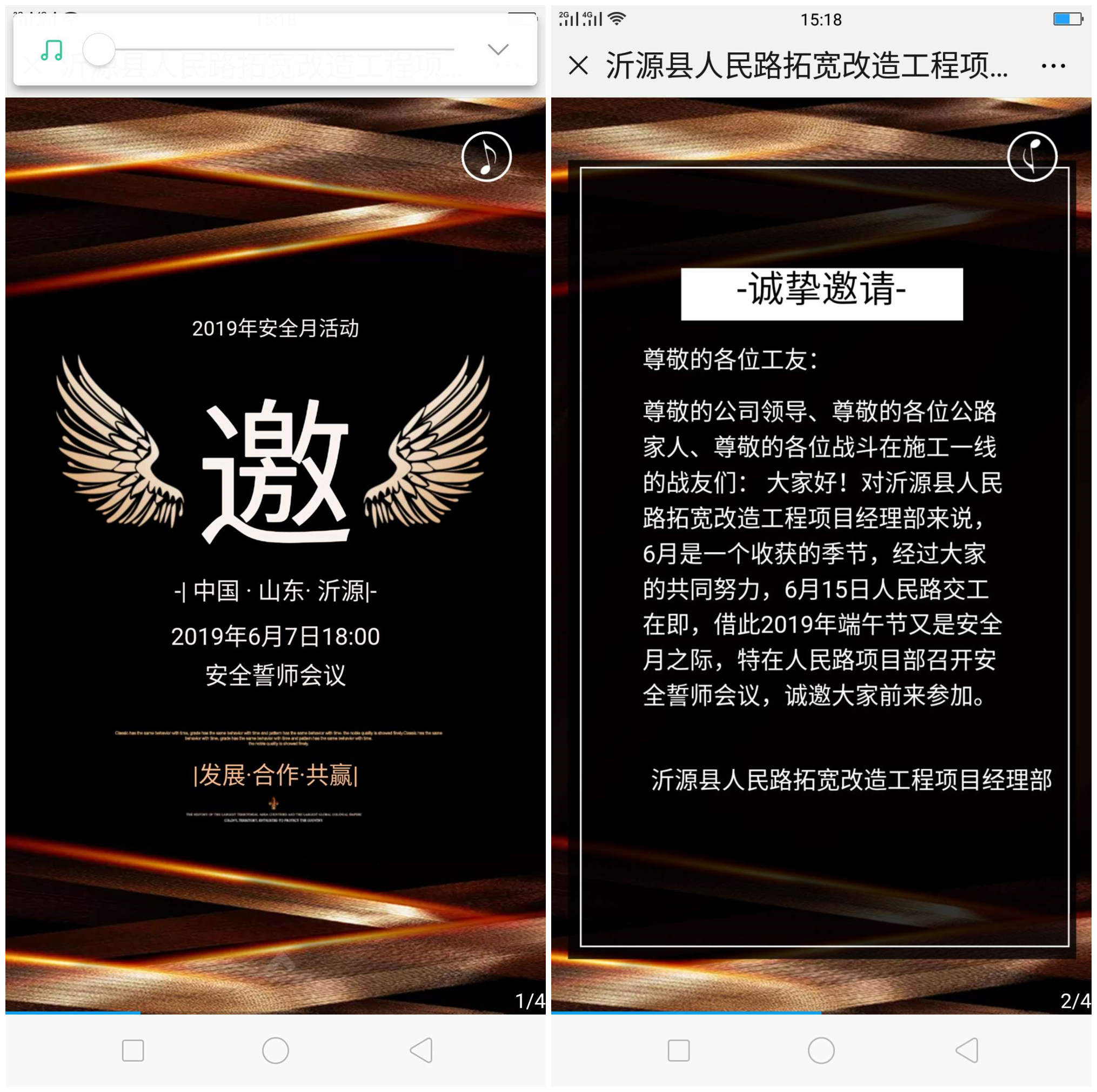 誓師大會于2019年6月7日18點舉行,首先項目部發(fā)出電子邀請函,對大家為人民路付出的努力而感謝。