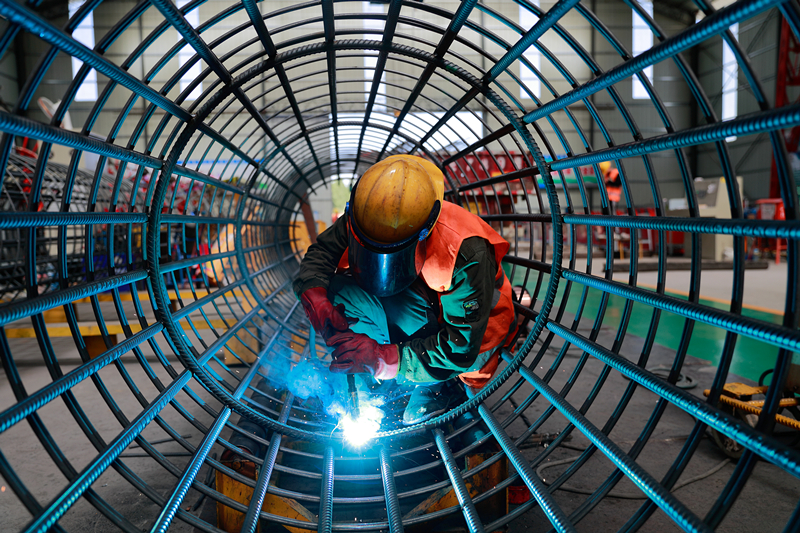 安全帽、防護(hù)面罩、防塵口罩、全套帆布質(zhì)地的工作服、長及手臂的皮質(zhì)手套——這些都是進(jìn)行焊接作業(yè)時(shí)的標(biāo)配,到了夏天,幾分鐘衣服就被汗水浸透,雖然高溫難耐,但鋼筋加工廠的工人們明白活不能耽誤,責(zé)任與堅(jiān)守是他們堅(jiān)定的承諾。