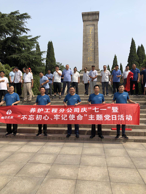 養(yǎng)護黨支部黨員在萊蕪戰(zhàn)役紀念碑前合影。
