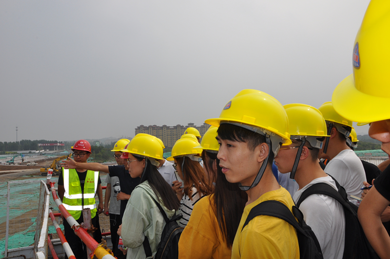 師生們一行首先參觀了雙魯立交橋施工現(xiàn)場,通過C匝道橋俯瞰整個(gè)施工現(xiàn)場,對工地進(jìn)展情況做了基本了解。然后實(shí)地觀摩了C匝道橋、B集散橋以及主線橋工藝,項(xiàng)目經(jīng)理黎正新向師生們講解了項(xiàng)目的概況和橋梁施工各工序作業(yè)流程及相關(guān)控制要點(diǎn);并從施工標(biāo)準(zhǔn)化和規(guī)范化、管理信息化等方面對工程的實(shí)施進(jìn)行了講解。項(xiàng)目橋梁現(xiàn)場負(fù)責(zé)人張博森帶領(lǐng)師生團(tuán)參觀了橋梁主體結(jié)構(gòu),對橋梁施工的現(xiàn)澆箱梁的支架搭設(shè)、模板鋪設(shè)、鋼筋綁扎以及混凝土澆筑進(jìn)行詳細(xì)講解,同時(shí)也對雙魯立交橋從下部結(jié)構(gòu)樁基施工到現(xiàn)澆箱梁的整個(gè)施工工序進(jìn)行了重要講解,并對各位師生的疑問一一作了詳細(xì)解答。