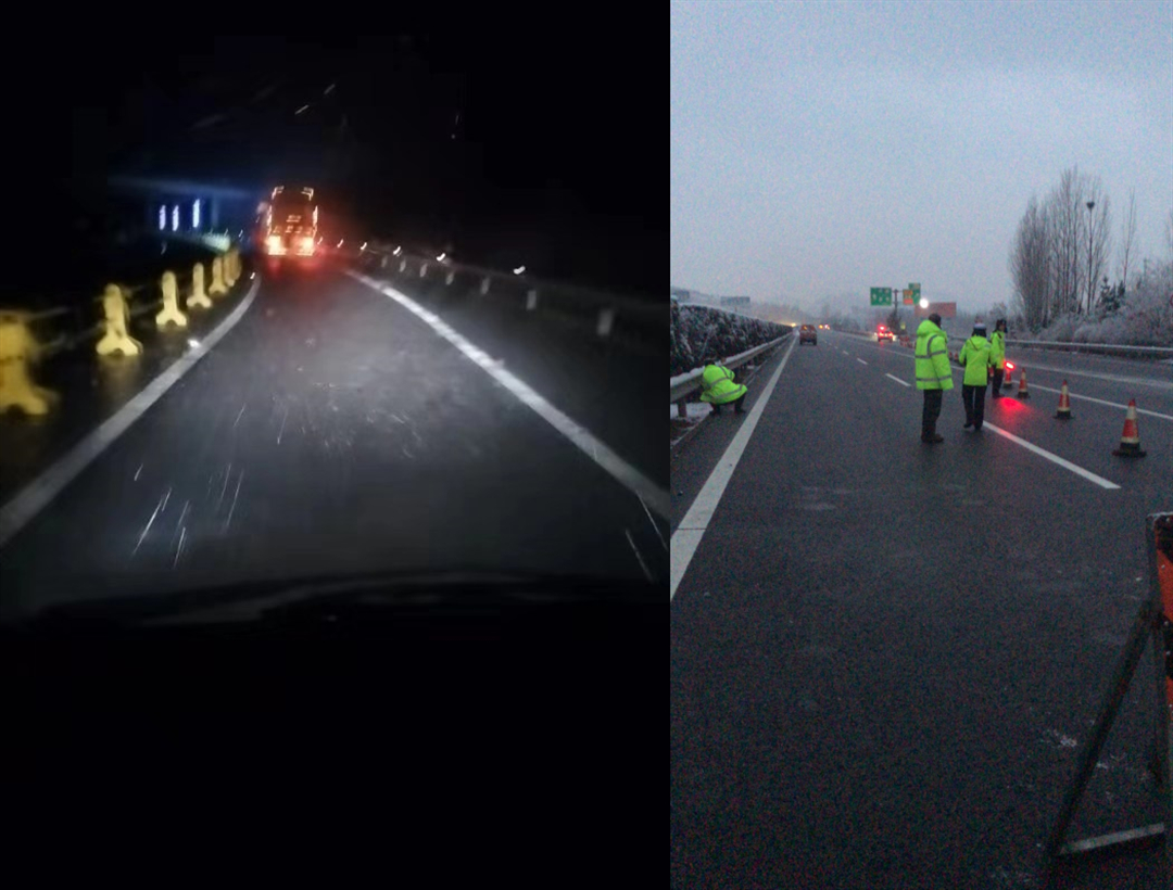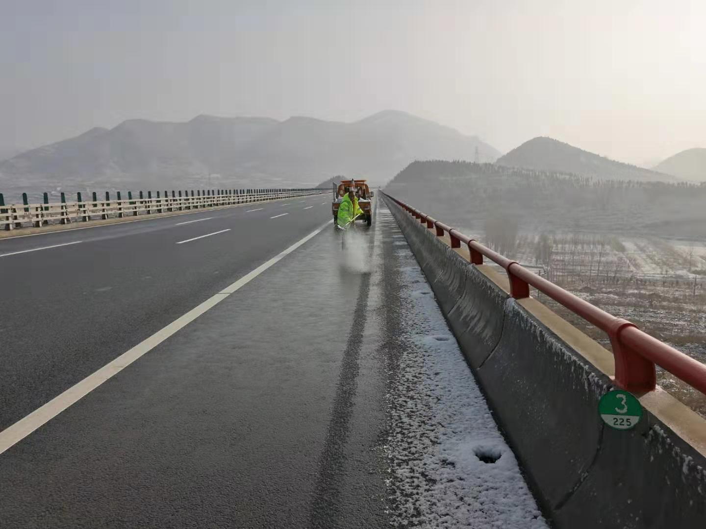 與此同時我們青蘭小修的工作人員便開始進入了應急模式,對積雪的路面進行清理和對路面灑融雪劑的作業(yè),為了防止在高速上因路滑發(fā)生意外,所有工作人員全部都爭分奪秒的進行著工作。