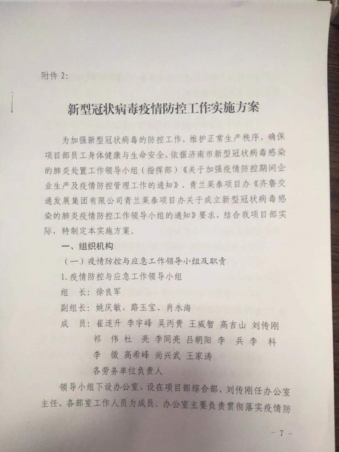 面對席卷全國的新型冠狀病毒的蔓延,青蘭項目全體職工不消極、不懈怠。制定方案,籌措物資,加強(qiáng)宣傳。積極貫徹落實濟(jì)南市《關(guān)于加強(qiáng)疫情防控期間企業(yè)生產(chǎn)及疫情防控管理工作的通知》、青蘭萊泰項目辦《關(guān)于成立新型冠狀病毒感染的肺炎疫情防控工作領(lǐng)導(dǎo)小組的通知》要求,全力以赴打好2020年復(fù)工前的攻堅戰(zhàn)。