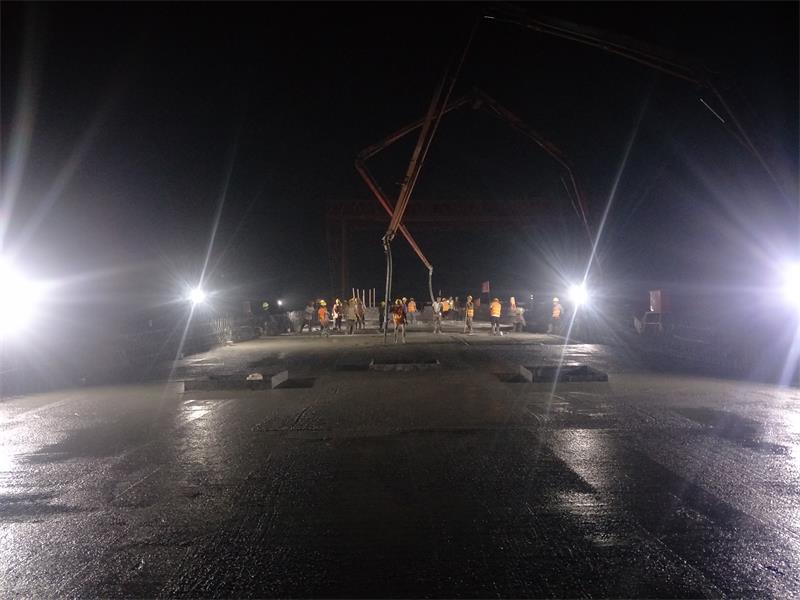 現(xiàn)場管理人員、技術(shù)人員和試驗人員全過程跟蹤作業(yè),經(jīng)過將近9小時的緊張奮戰(zhàn),順利完成了K 59+088.719興隆莊特大橋右幅第1、2孔的支架現(xiàn)澆箱梁底腹板混凝土澆筑。本次現(xiàn)澆箱梁順利完成澆筑標(biāo)志著興隆莊特大橋現(xiàn)澆箱梁進入了關(guān)鍵性階段,為下一階段的砼澆筑奠定了堅實基礎(chǔ)。