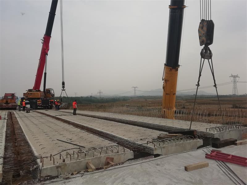 新寧高速項(xiàng)目橋梁數(shù)量多,上部結(jié)構(gòu)基本為梁板吊裝,項(xiàng)目部在橋梁吊裝上做了精心的部署:一、根據(jù)現(xiàn)場實(shí)地考察,規(guī)劃及選擇合理的全線運(yùn)梁道路;二、針對(duì)橋梁編制梁板吊裝專項(xiàng)方案,組織現(xiàn)場技術(shù)人員及吊裝隊(duì)伍進(jìn)行技術(shù)、安全交底;三、嚴(yán)格控制吊裝設(shè)備進(jìn)場、現(xiàn)場吊裝順序、梁板運(yùn)輸?shù)仁┕きh(huán)節(jié);四、現(xiàn)場安排專人指揮,安全人員全程跟蹤,確保吊裝安全順利。