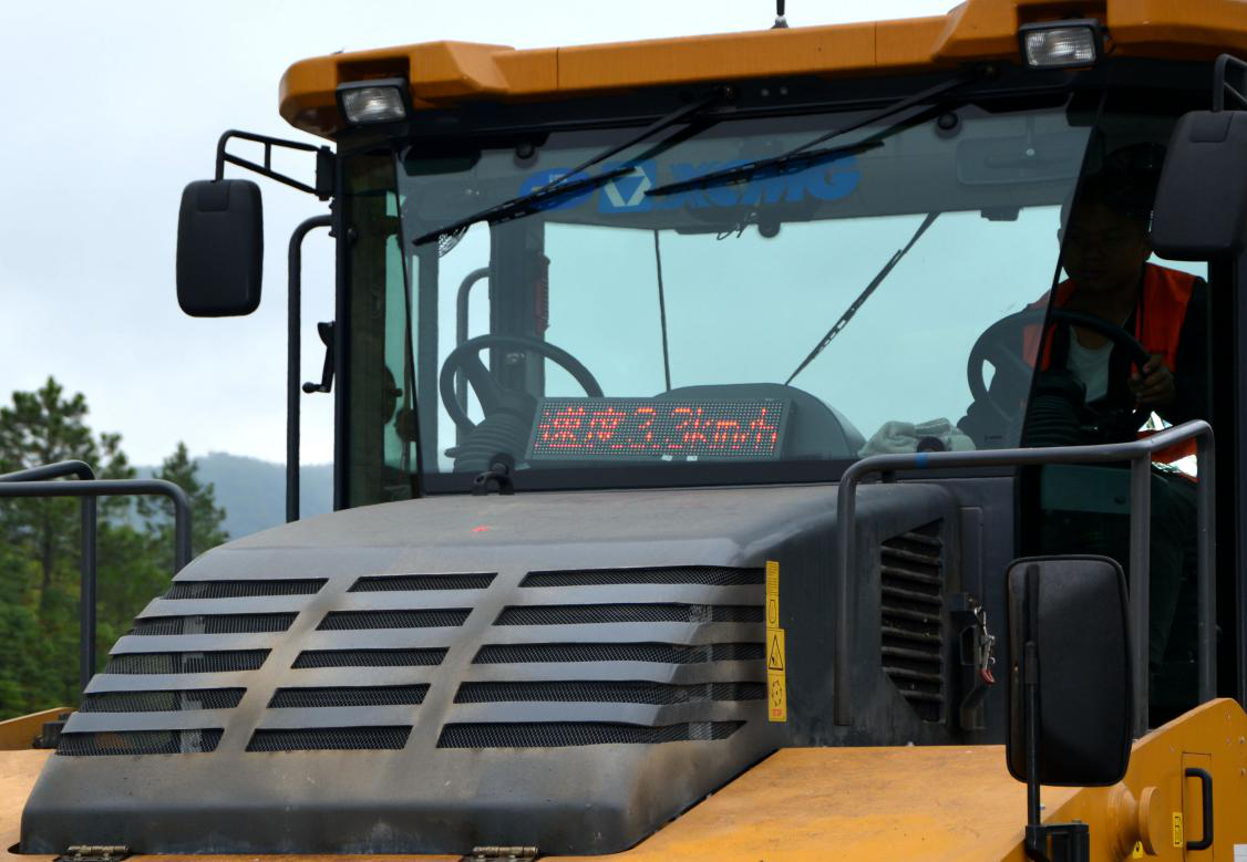 監(jiān)控系統(tǒng)工作原理是壓路機行駛速度由GPS裝置進行監(jiān)測,碾壓溫度由壓路機下的溫度測量裝置監(jiān)測,同時連接機頂?shù)腖ED屏幕,將監(jiān)測數(shù)據(jù)在屏幕上即時、直觀的顯示出來,攤鋪機在腳踏板下方安裝溫度監(jiān)控設(shè)備,實時將溫度信息公布至攤鋪機上方的LED顯示屏。此監(jiān)控系統(tǒng)有助于現(xiàn)場施工管理人員直觀的監(jiān)控碾壓速度和碾壓溫度,對不符合指標(biāo)情況及時處理,為路面施工質(zhì)量和安全生產(chǎn)提供了有利條件。監(jiān)控系統(tǒng)數(shù)據(jù)的直觀顯示,提高了管理人員和機械操作手的標(biāo)準(zhǔn)化施工意識,嚴格控制攤鋪速度和碾壓溫度,在路面施工搶抓進度的同時,也對施工質(zhì)量做到精細管理。
