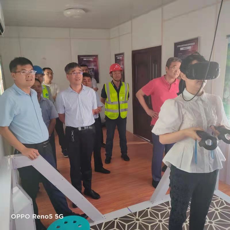 在項目部駐地,檢查組一行認(rèn)真聽取了我部項目經(jīng)理對郯城G205項目部駐地、綜合場站現(xiàn)場布置及工程項目標(biāo)準(zhǔn)化建設(shè)等情況做現(xiàn)場講解。隨之檢查組一行來到安全教育培訓(xùn)體驗館進(jìn)行VR等體驗,通過模擬現(xiàn)場施工環(huán)境,針對容易出現(xiàn)安全問題的地方進(jìn)行實景演示,通過自身參與體驗,加強(qiáng)施工現(xiàn)場對待安全問題的重要性,體驗館項目覆蓋了施工現(xiàn)場常見的大部分安全隱患,模擬現(xiàn)場施工場景,使建筑施工現(xiàn)場的各種禁忌和安全隱患潛移默化的提高體驗者的意識。