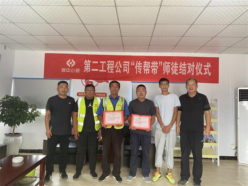 2021年9月9日,在此教師節(jié)來臨之際,山東魯中公路建設(shè)有限公司第二工程公司在郯城G205項(xiàng)目黨建室舉行了第二工程公司“傳幫帶”師徒結(jié)對(duì)儀式?;顒?dòng)旨在幫助新員工能夠快速融入集體、增強(qiáng)本領(lǐng),通過“傳、幫、帶”的形式盡快提升新員工自身工作能力,錘煉一支能打、能戰(zhàn)、能抗的工程建設(shè)隊(duì)伍。