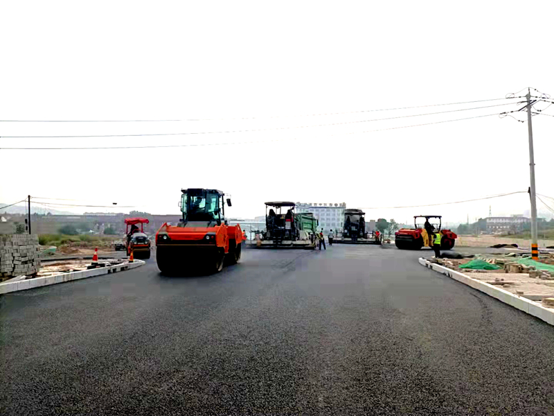 施工人員嚴格控制瀝青攤鋪要點,下面層攤鋪速度宜控制在2.0m/min左右,松鋪系數(shù)應(yīng)與夯錘振搗等級、攤鋪速度、碾壓工藝等相匹配,各項施工參數(shù)嚴格按照規(guī)范施工,現(xiàn)場做好虛鋪厚度的檢測與記錄。經(jīng)過上周的路基清理工作在十月一日沿河路已經(jīng)完成k0+200-k1+040、k1+423-k1+687、k1+735.6-k1+926下面層AC-20瀝青全幅攤鋪作業(yè)施工。
