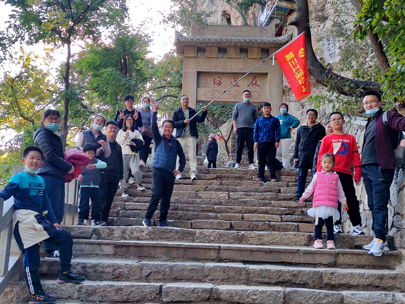 10月23日上午陽光燦爛,山東魯中公路第三工程公司員工與家屬們,沿著山峪林間石徑一路在山村古建筑中穿行而過,一行人一路相互鼓舞拾級(jí)盤旋而上經(jīng)玻璃棧道參觀了亞洲最大全琉璃藥師佛像,踏上玻璃懸索橋體驗(yàn)了一把凌空俯攬群山的樂趣,踩在高空步云橋上感覺自己的自信心嚴(yán)重爆表。齊長城上這邊鼓槌舞動(dòng)沖鋒的戰(zhàn)鼓擂地震天響,那邊凱旋鑼聲已經(jīng)響徹山谷。穿行棧道,或激流中漂流而下,或溜索飛躍柿巖,或直接就從山間羊腸小道一路小跑凱旋而歸。