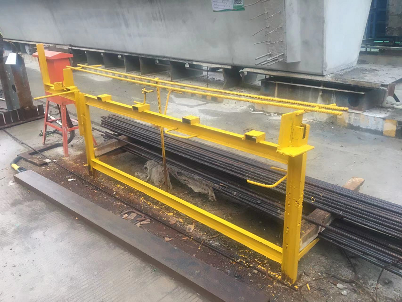 按照圖紙?jiān)O(shè)計(jì),該鋼筋縱向間距50cm,橫向隨頂板橫筋布置,每根橫筋布置5根。初期施工時(shí),加工了頂板筋臺(tái)架,頂板筋在臺(tái)架上全部綁扎完成,工人在成型的鋼筋頂部利用兩側(cè)臺(tái)架搭設(shè)工作平臺(tái),蹲在平臺(tái)上后退著逐個(gè)焊接拉結(jié)筋??v向通過拉線,橫向通過尺量定位,功效慢,干擾多,勞動(dòng)強(qiáng)度大,定位不準(zhǔn)確,線形不順直,外觀質(zhì)量較差。