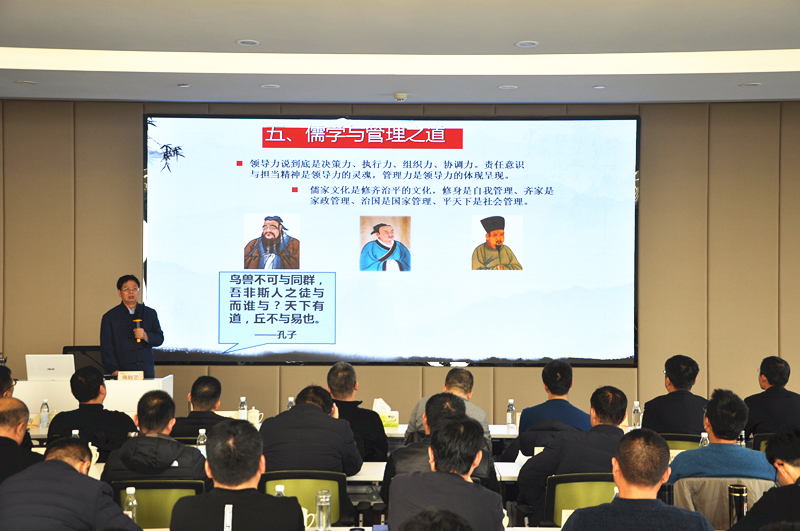 9日,課程從企業(yè)管理切入,講述了儒家智慧與修齊治平之道。老師首先對儒學(xué)概念進行了簡要解析。并深入淺出,帶領(lǐng)學(xué)員們探尋儒學(xué)其本質(zhì),及生活中的儒學(xué)智慧。儒家思想崇尚道德修為,但其學(xué)說并不僅僅限于道德,如今其已更多地滲透為中國人的價值觀及其是非評判標準。中華民族在泱泱五千年文明發(fā)展史中所積淀起的獨特文化傳統(tǒng),鍛造出了中國人所特有的文化品性,儒家的入世品格決定了它必然也是管理之道。儒家文化就是要從自我、家庭、國家、社會各個角度進行治理。講座結(jié)束后,老師與學(xué)員們進行了深入的探討與交流,使儒家的核心觀點更具現(xiàn)實意義,令人受益匪淺。