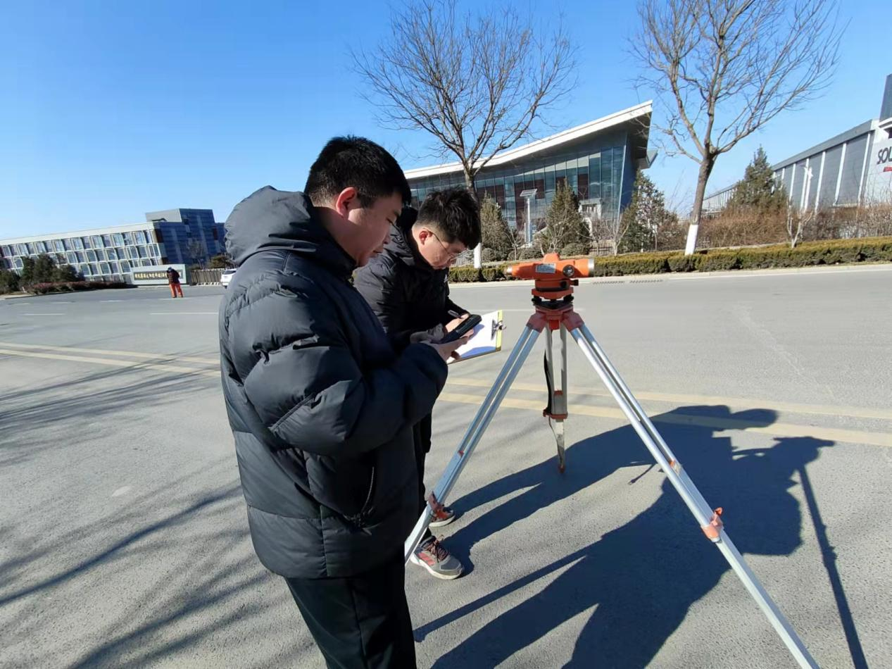 在四等水準(zhǔn)測(cè)量比賽中,雖然室外氣溫偏低,但參賽選手們依然信心滿滿、精神抖擻,各隊(duì)伍找點(diǎn)、觀測(cè)水準(zhǔn)路線,填寫標(biāo)尺讀數(shù),計(jì)算視距差等一系列操作規(guī)范合理,快而精準(zhǔn)。