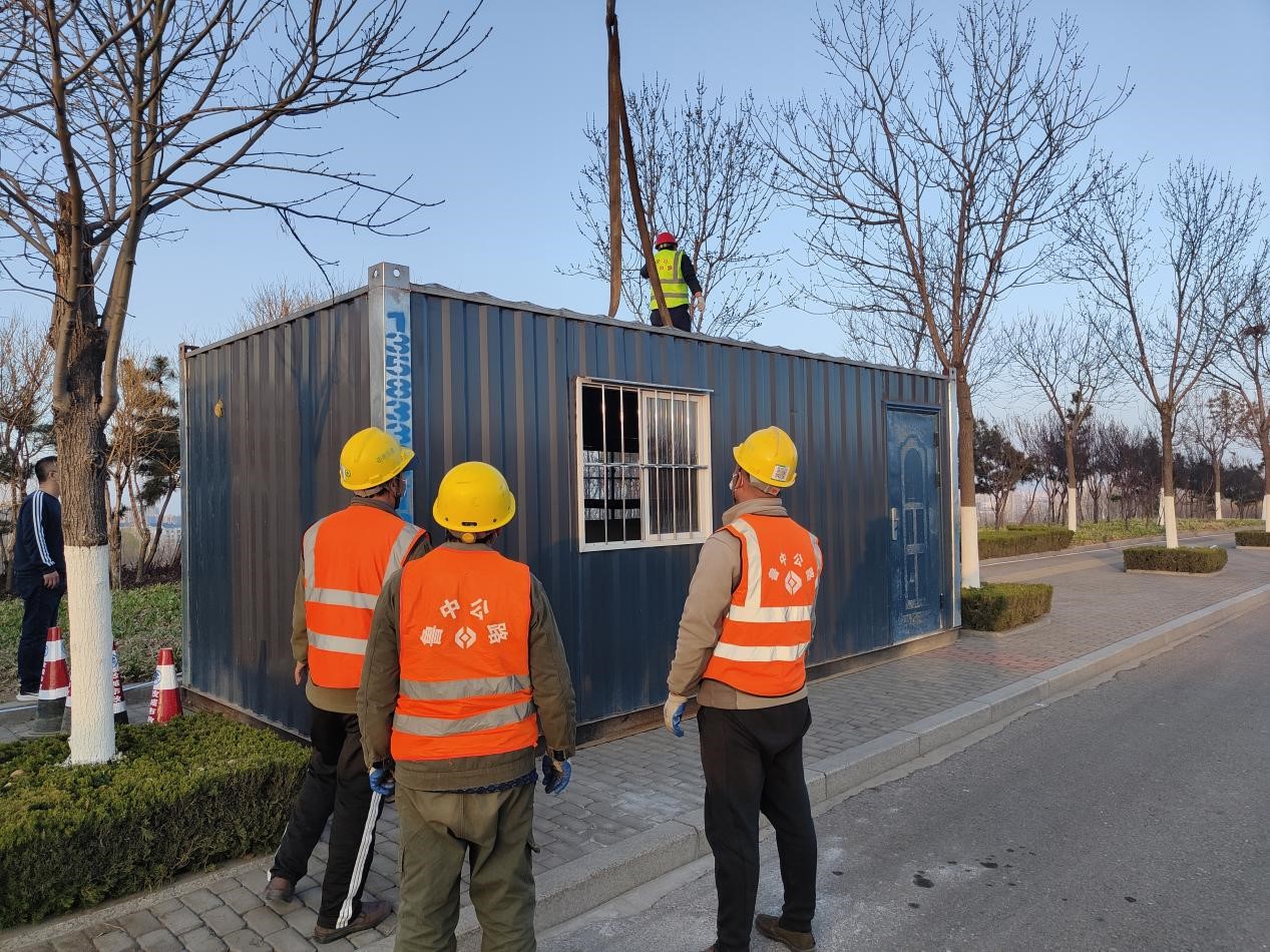 3月14日下午18時,魯中公路第五區(qū)域項(xiàng)目部將施工現(xiàn)場集裝箱運(yùn)至G205將軍路路口,為防疫工作人員送去溫暖。