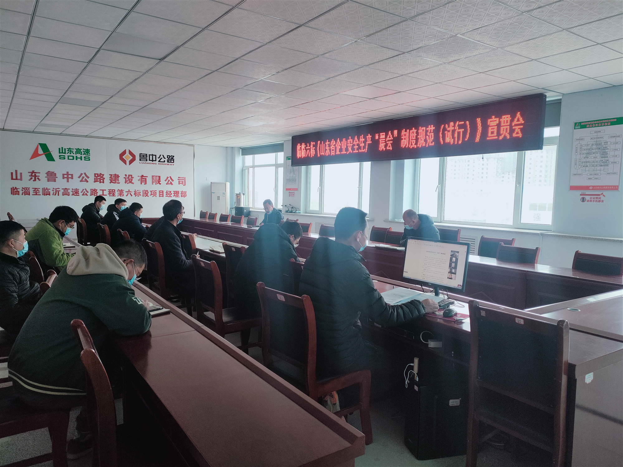 3月19日12點(diǎn)30分項(xiàng)目部在二樓會議室召開安全生產(chǎn)“晨會”制度宣貫會,期間嚴(yán)格落實(shí)疫情防控措施,項(xiàng)目部參會人員全程佩戴口罩,間隔入座;各工區(qū)經(jīng)理、現(xiàn)場安全負(fù)責(zé)人以騰訊視頻形式參會。