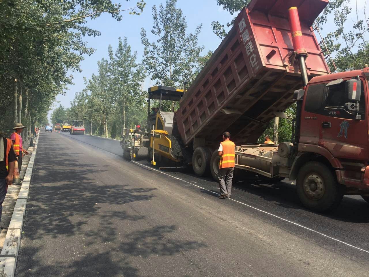 路面分公司博草線瀝青攤鋪施工現(xiàn)場