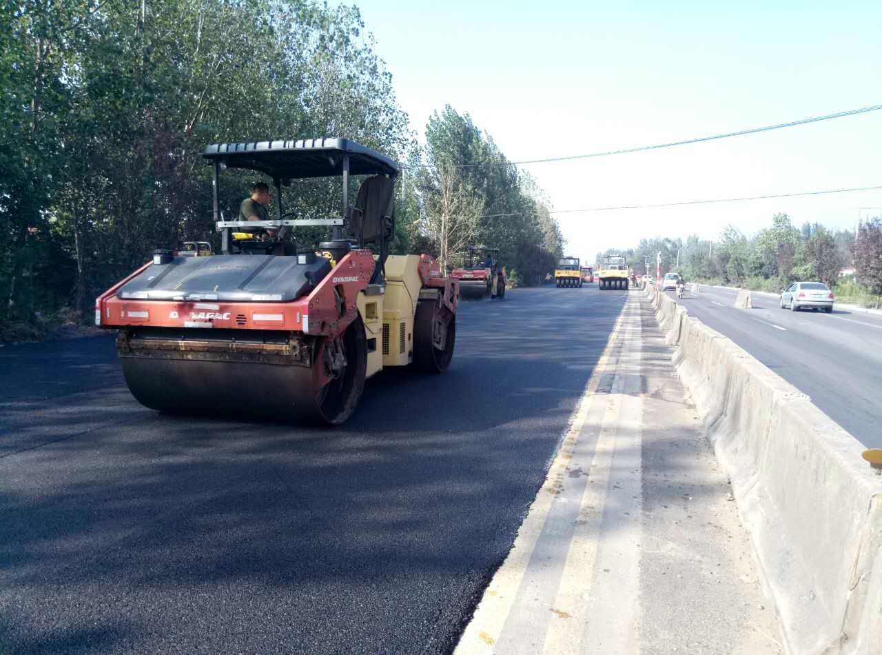 養(yǎng)護分公司九東路項目路面碾壓施工現(xiàn)場