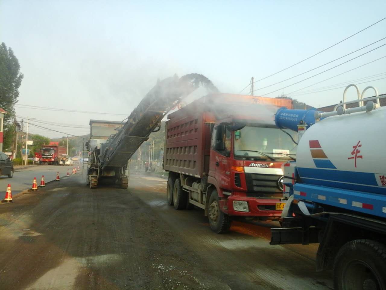在銑刨過程中,我們進行了水炮灑水降塵。