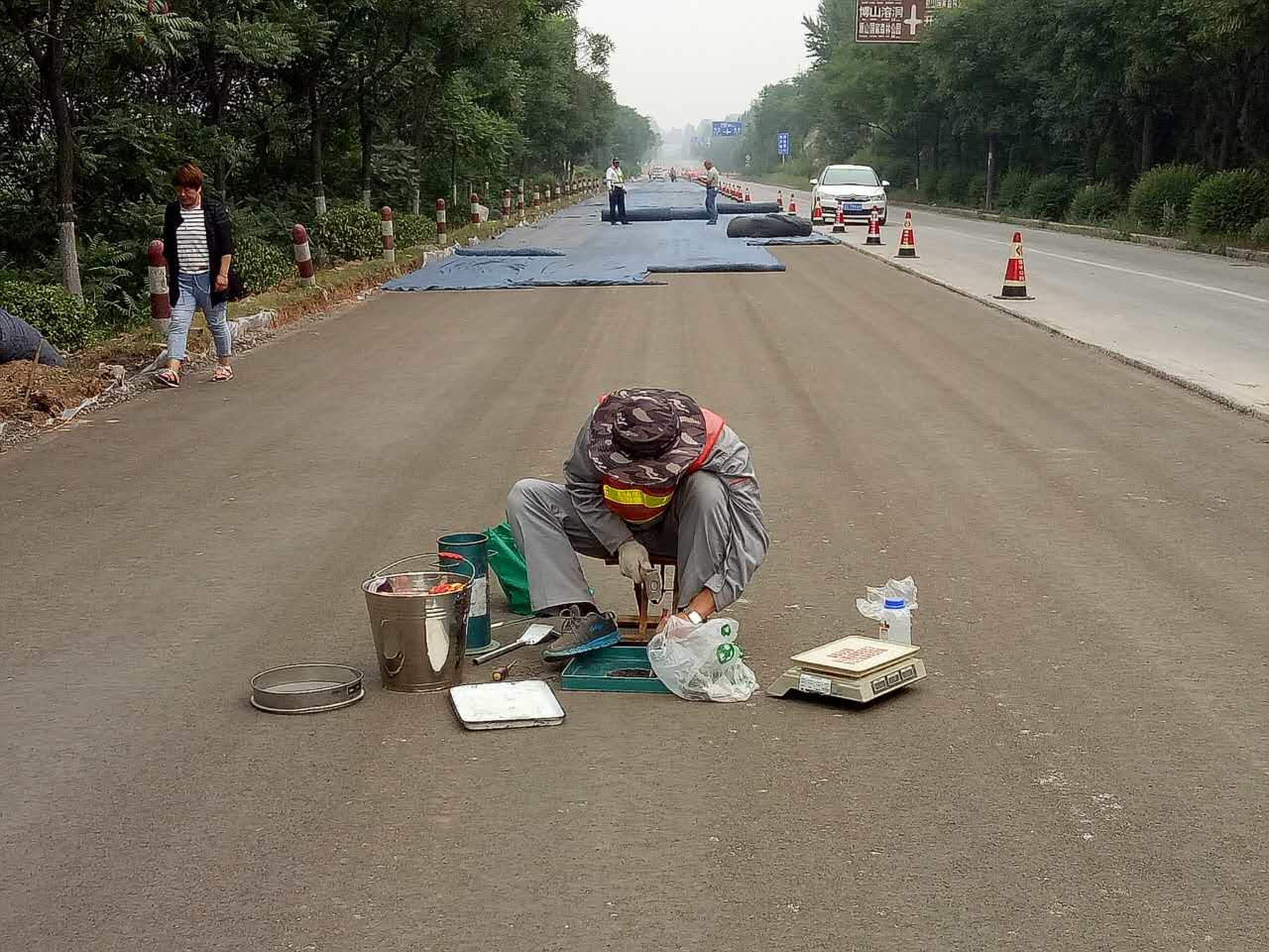 質(zhì)檢員在進行基層壓實度檢驗
