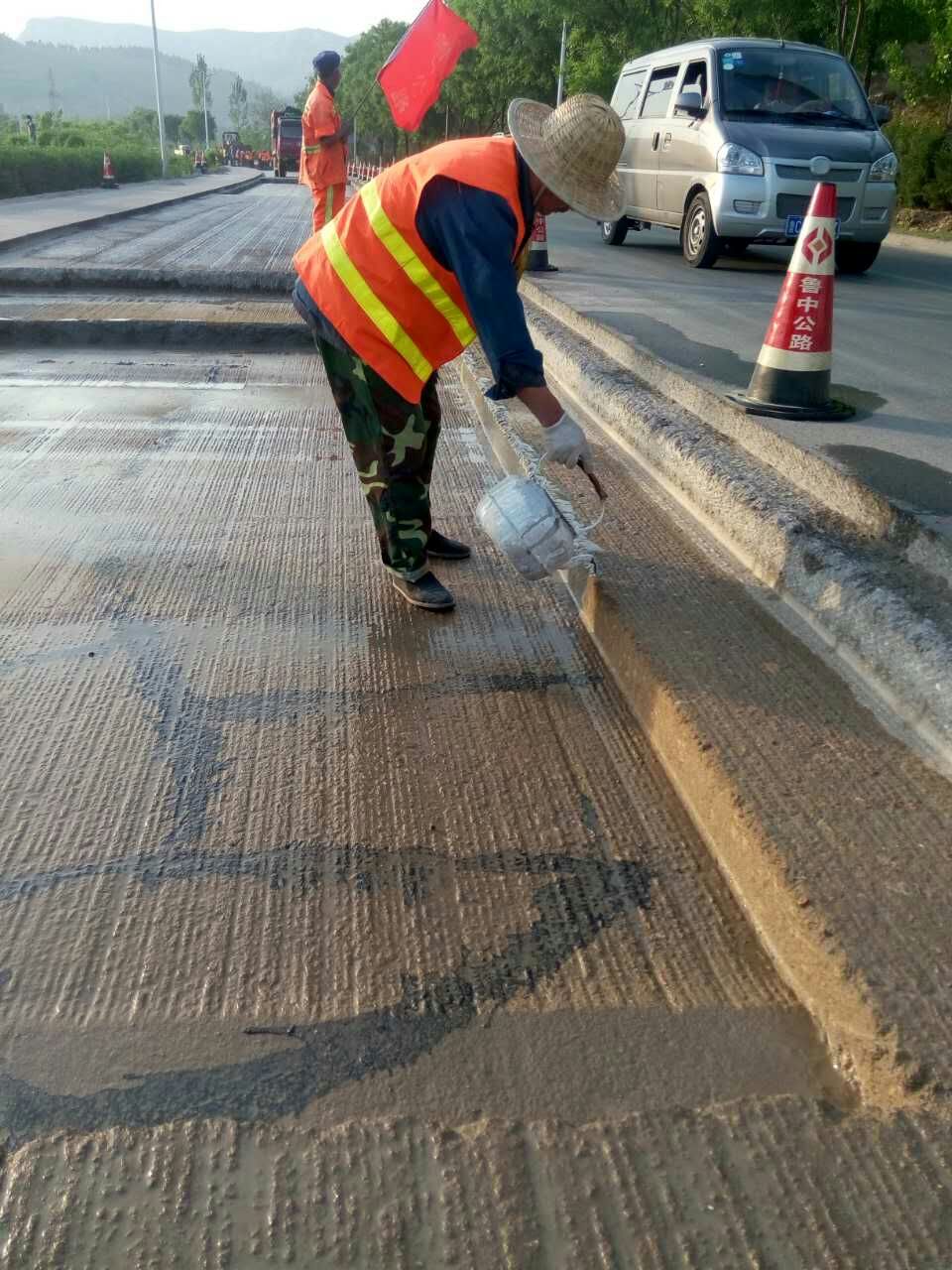 水泥穩(wěn)定碎石基層施工前水泥漿刷邊