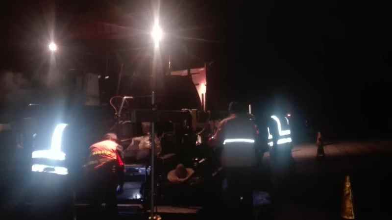 10月1日凌晨?jī)牲c(diǎn),路面分公司博草線瀝青面層攤鋪施工現(xiàn)場(chǎng)。