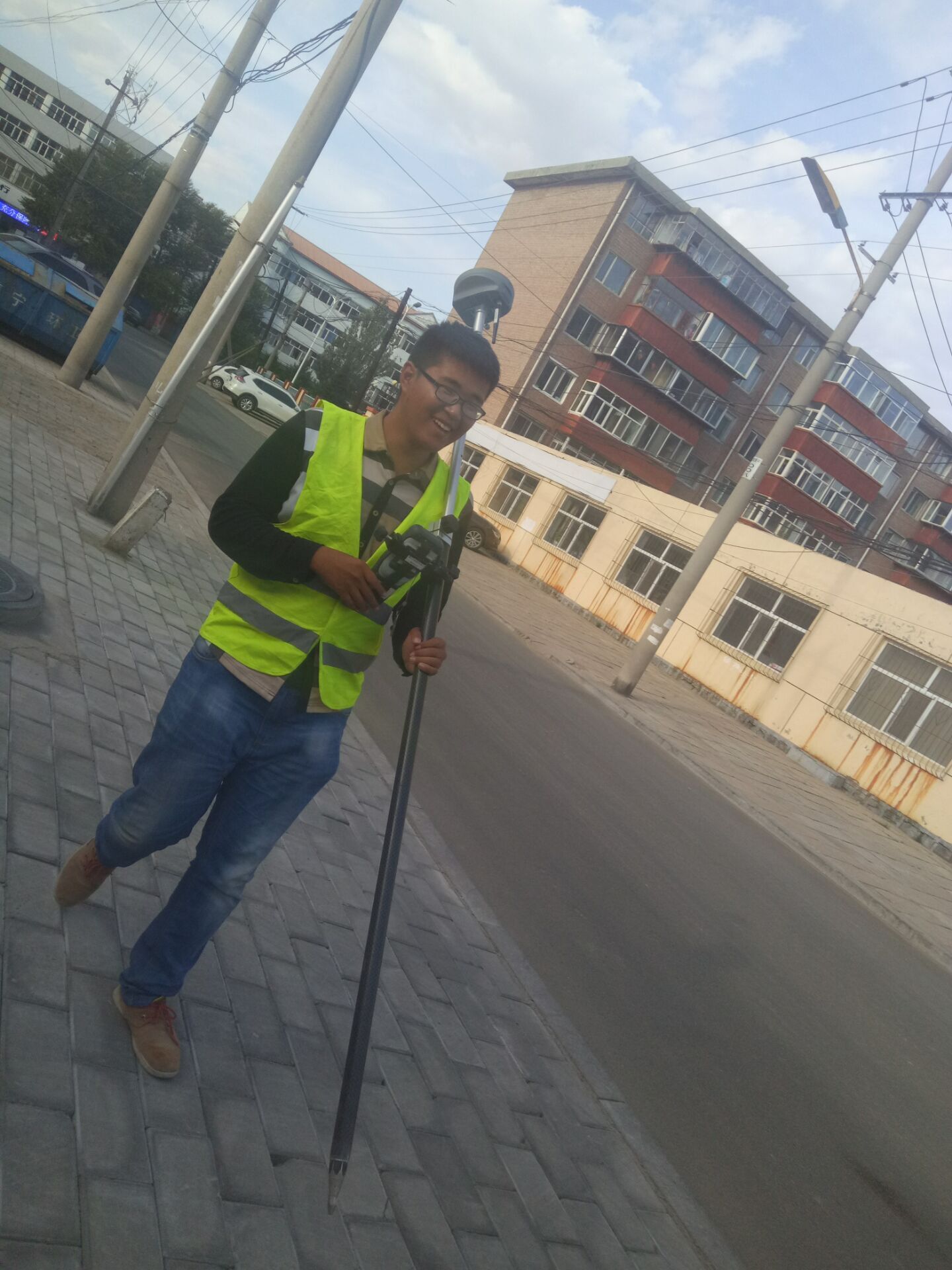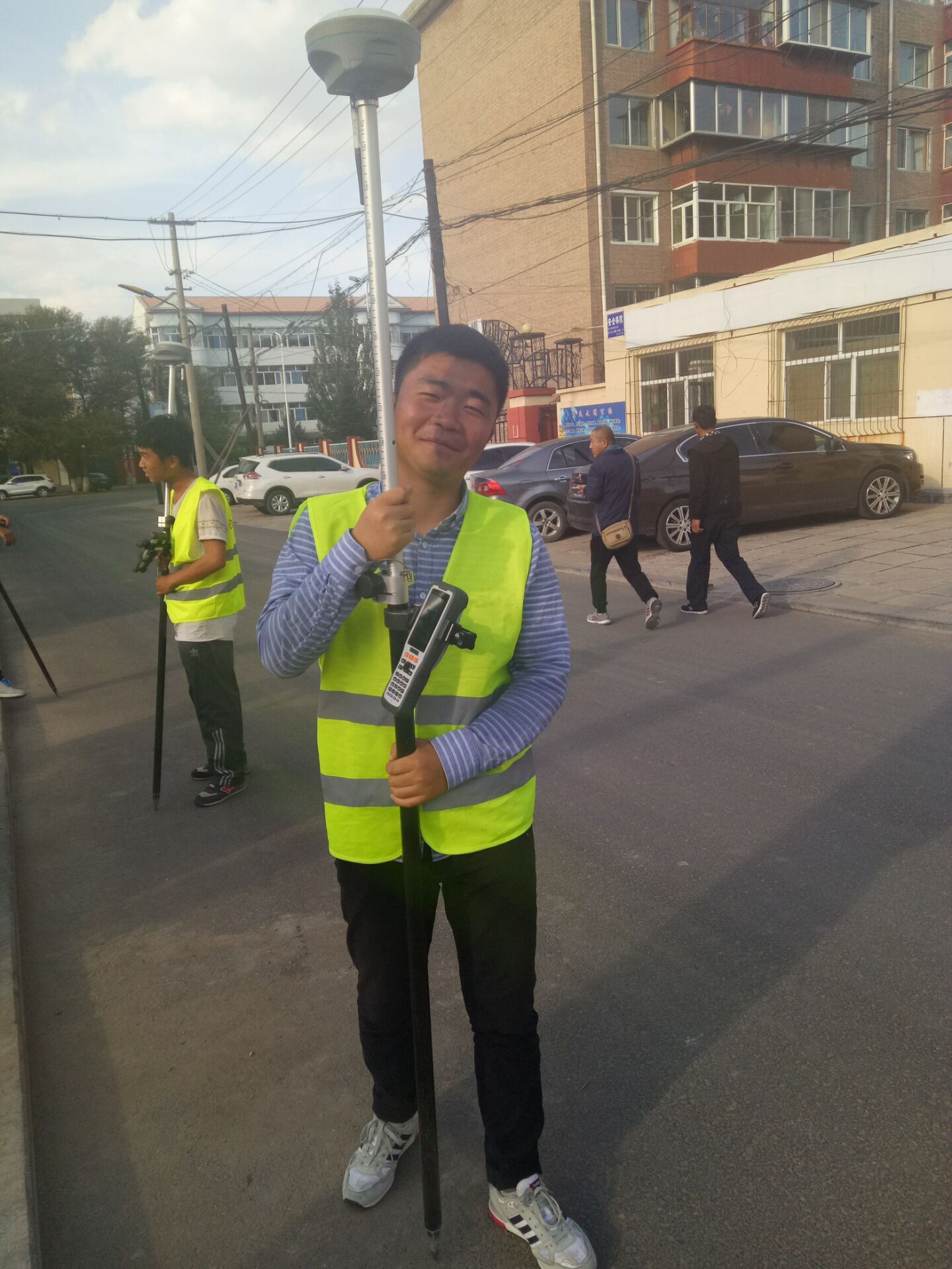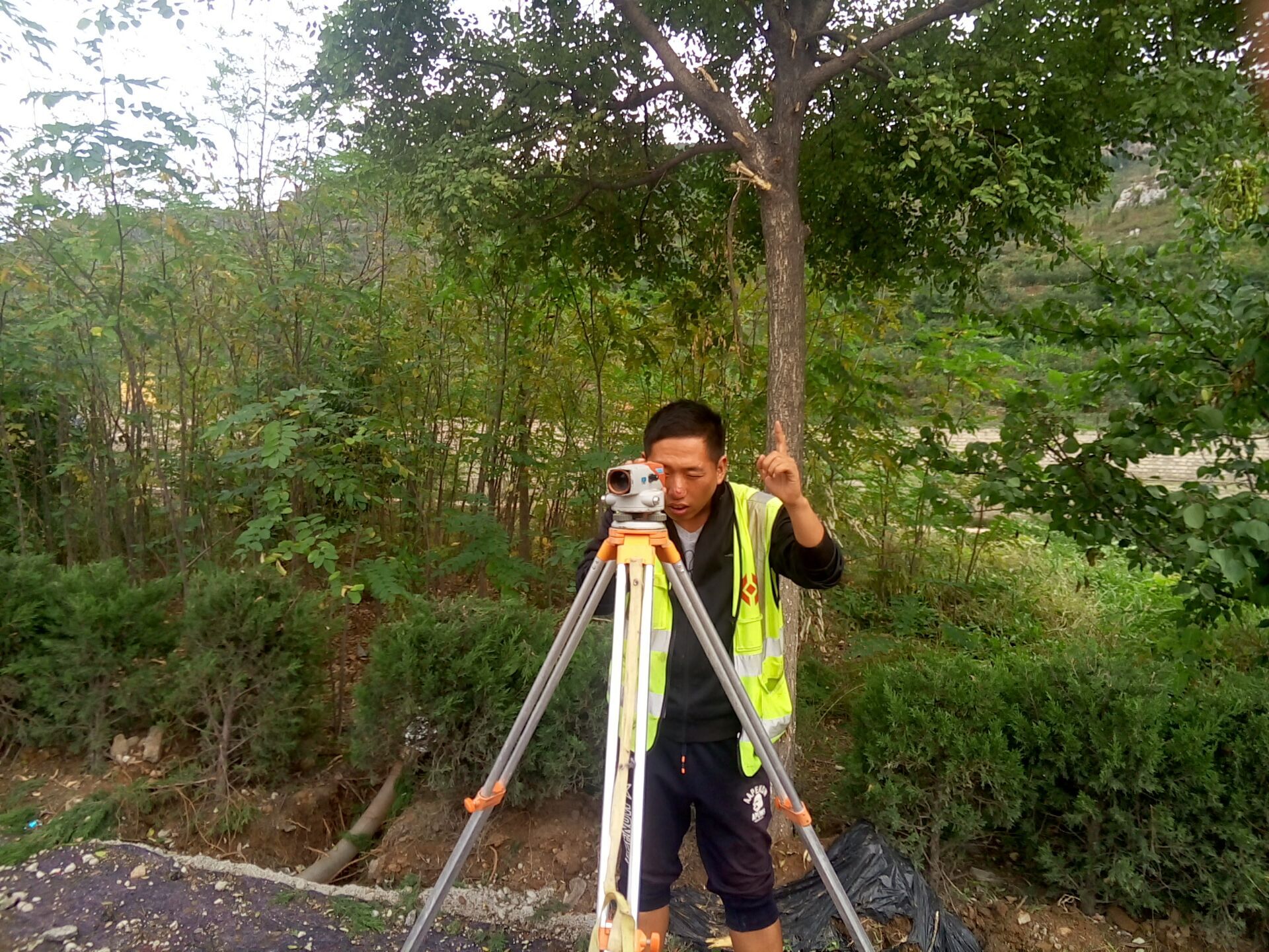 10月1日上午11:00,基礎(chǔ)分公司S102項(xiàng)目測(cè)量員沈夢(mèng)麟進(jìn)行測(cè)量工作。