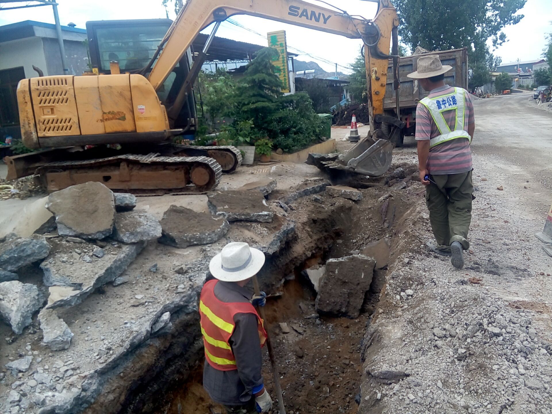 10月1日下午15:30,養(yǎng)護(hù)分公司九東項(xiàng)目部排水溝挖掘施工現(xiàn)場(chǎng)。